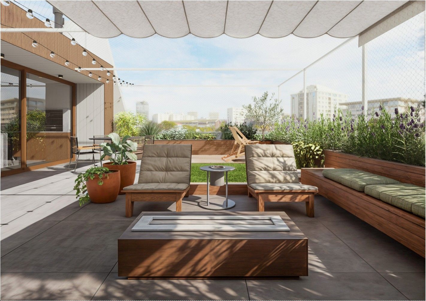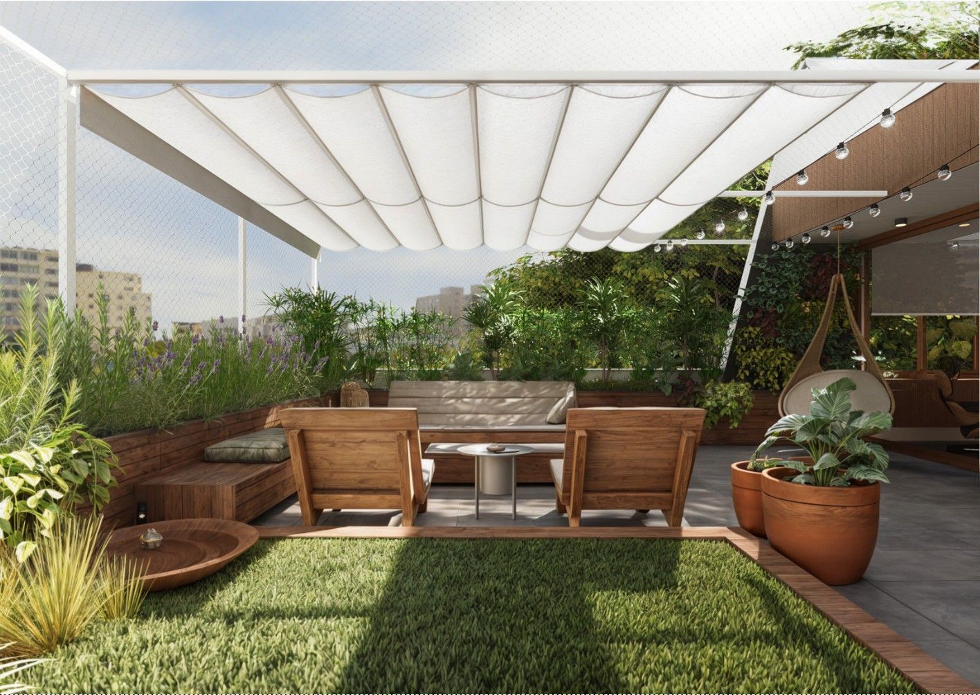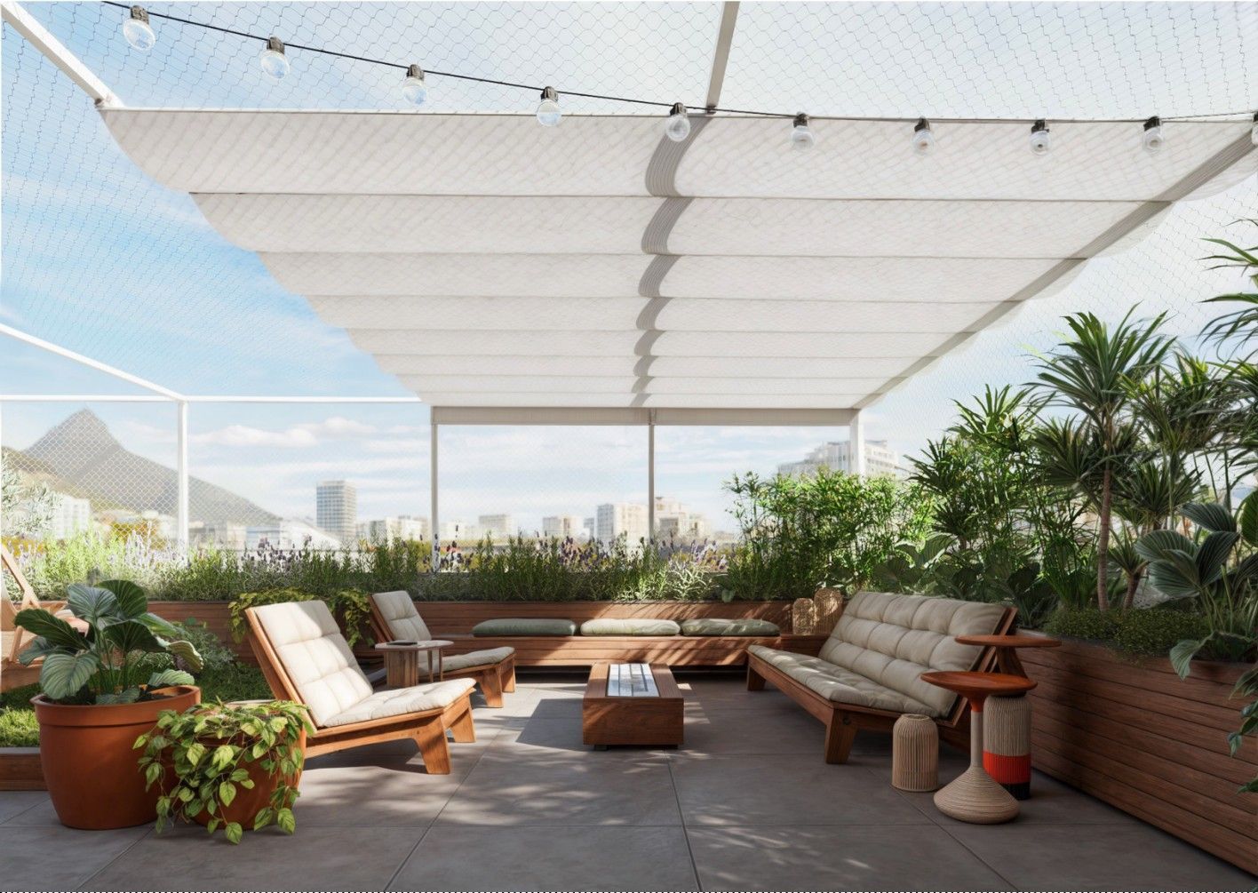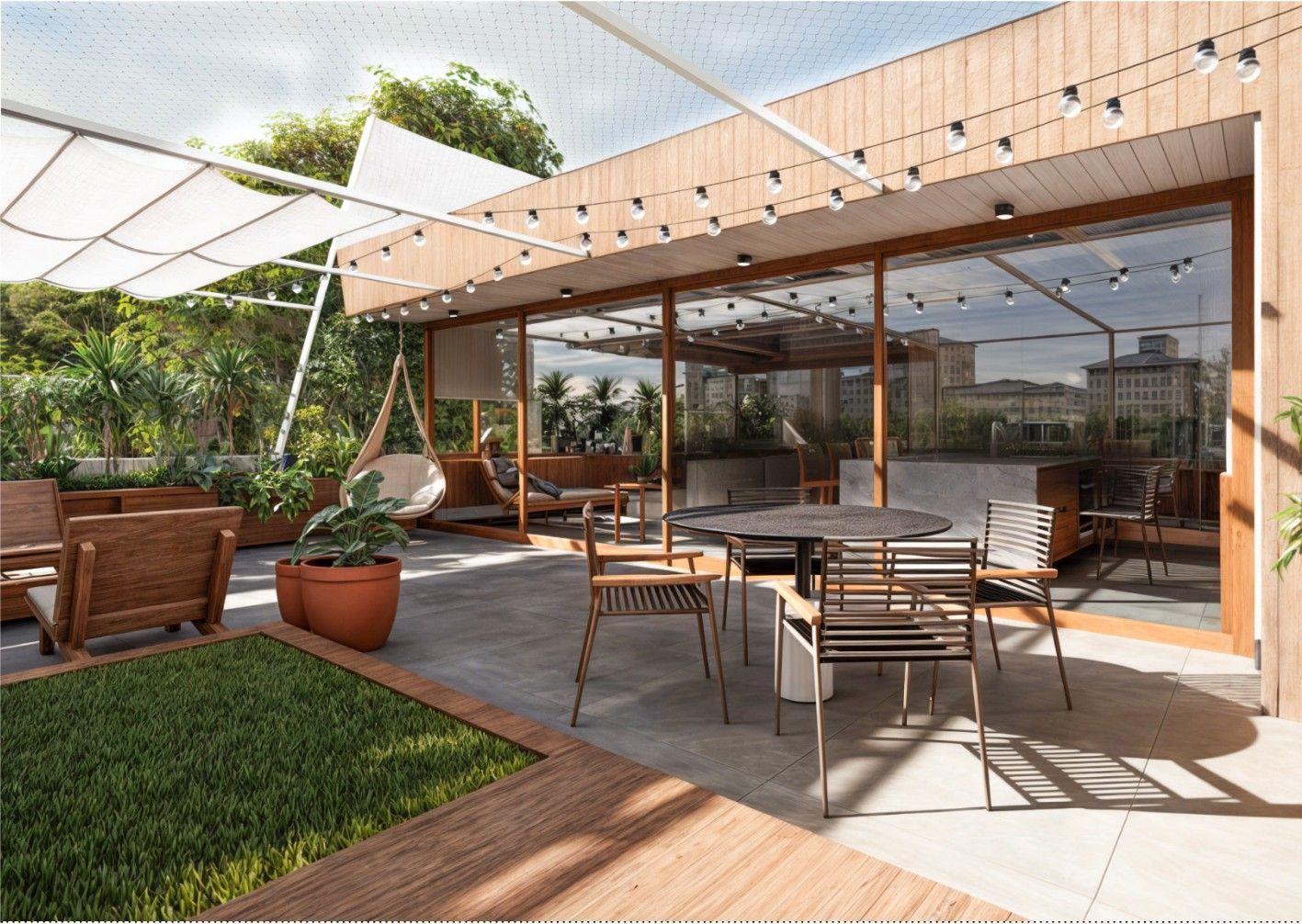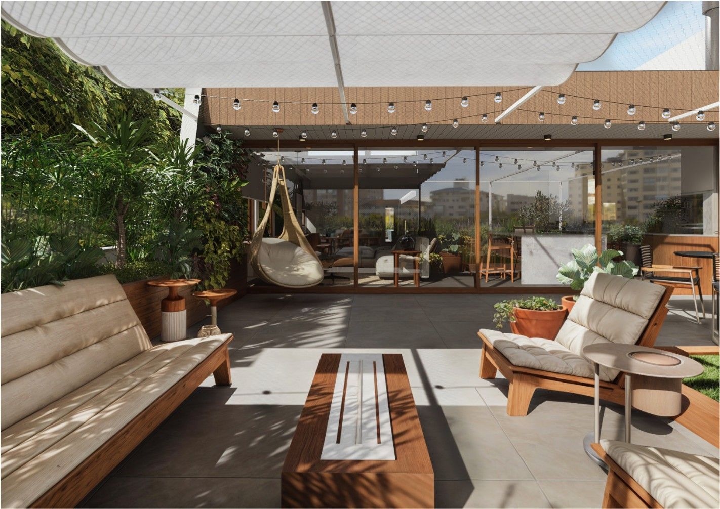 Área de lazer de 75m2; área de convivência de 90m2 com acomodação para 20 pessoas e ampla área de serviço de 28m2