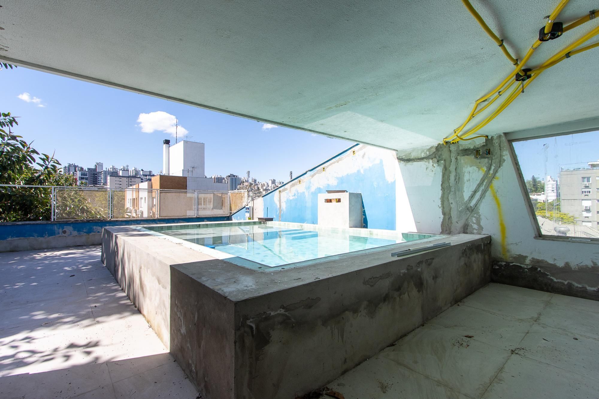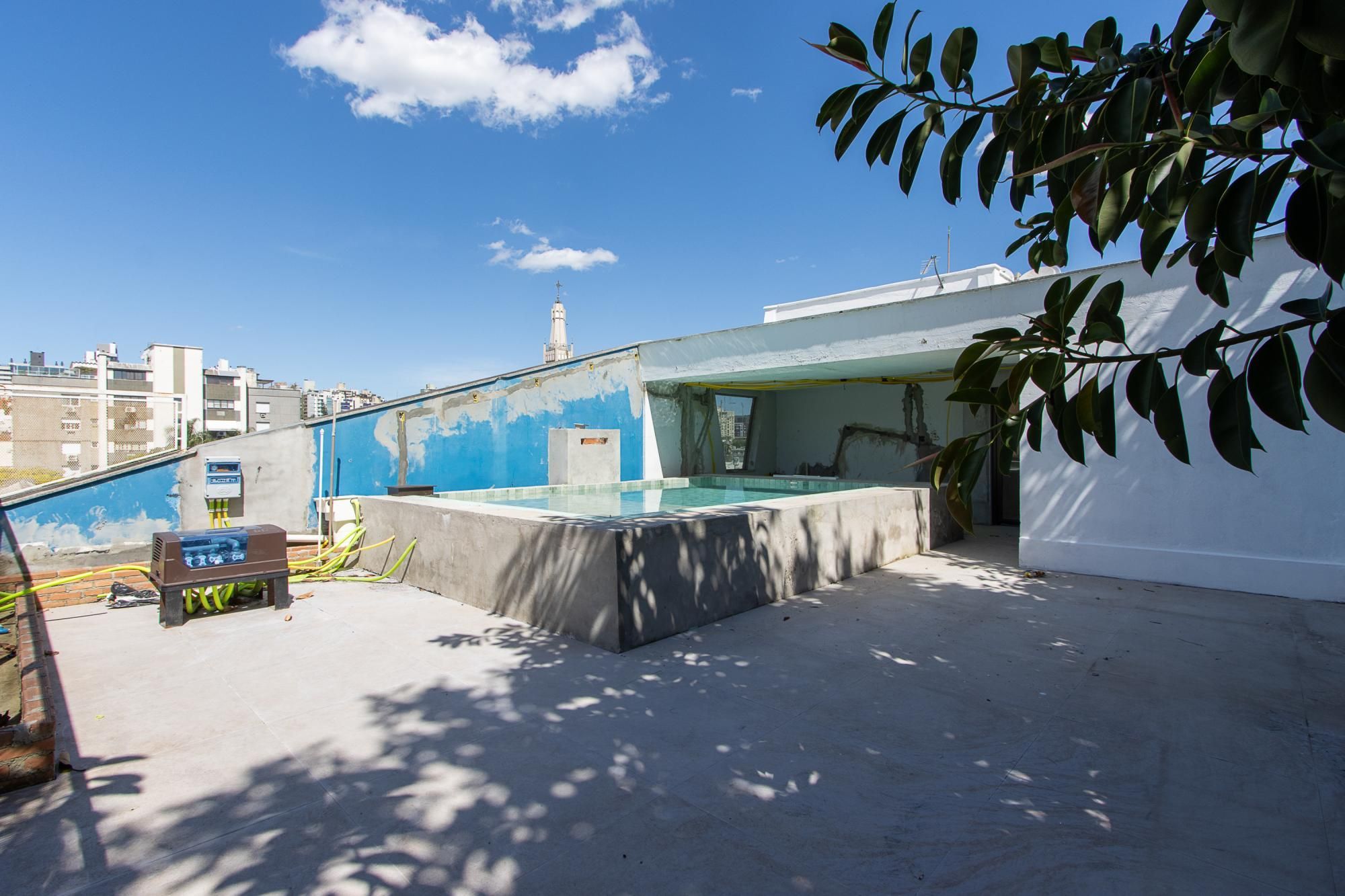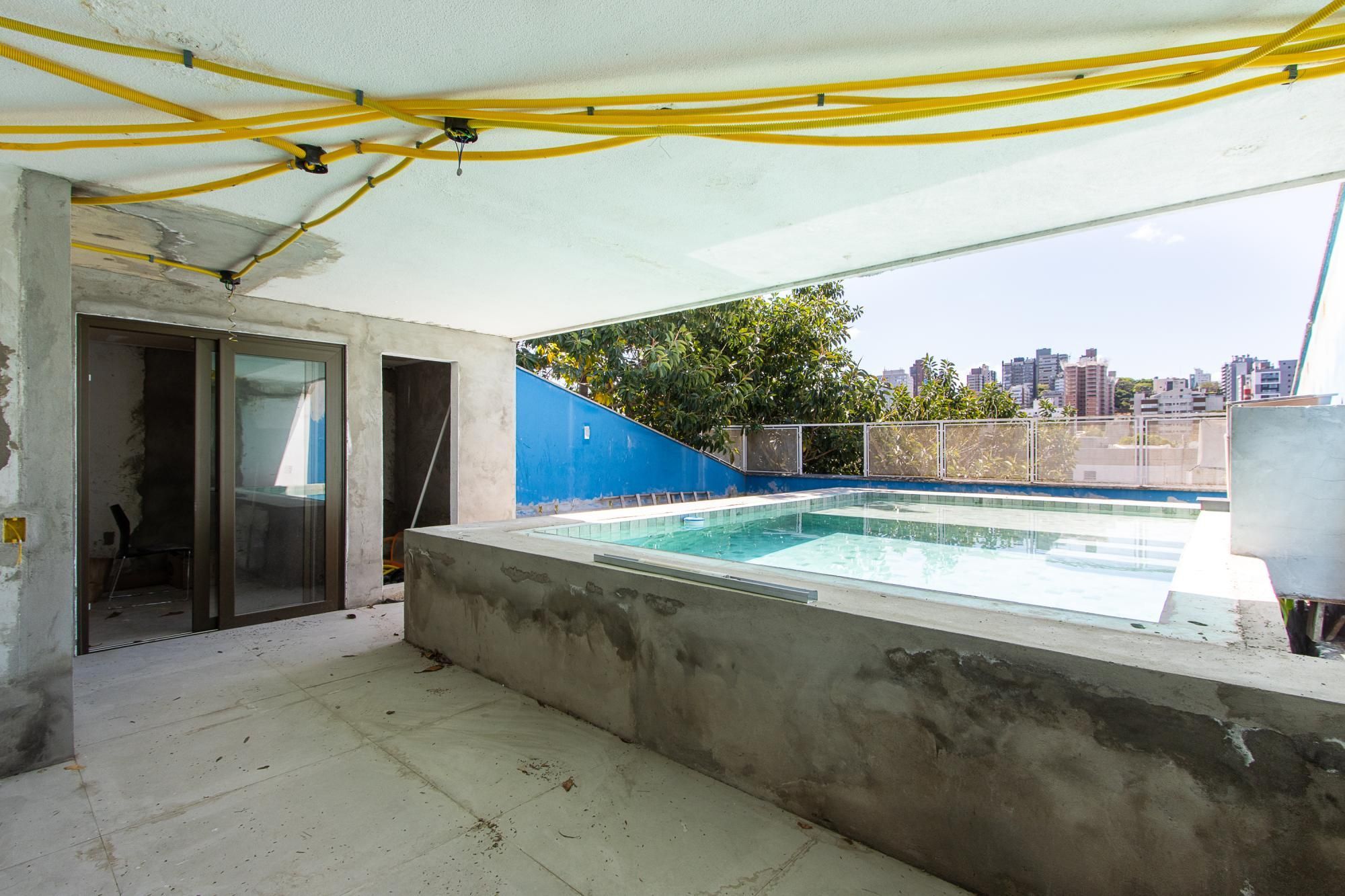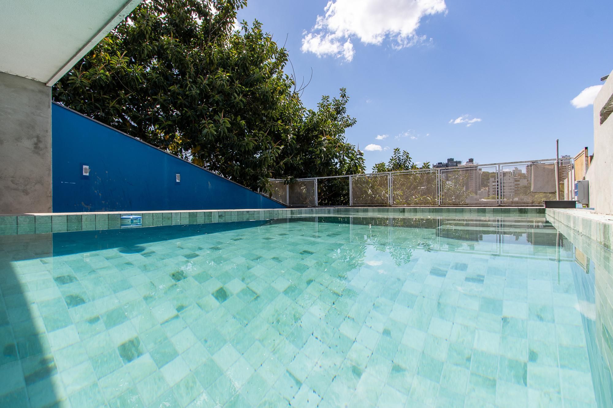 Área superior conta com piscina, churrasqueira e um amplo espaço para confraternização.