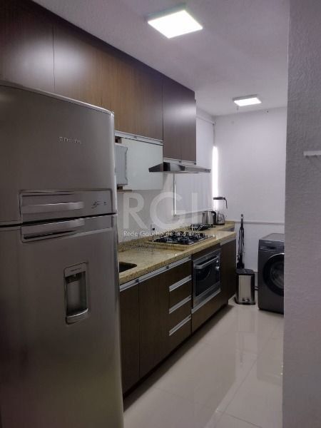 Apartamento mobiliado com 2 dormitórios à venda no bairro Hípica. Apartamento com dormitórios, cozinha e banheiro sob medida em MDF, living com sofá retrátil, cozinha com microondas, forno elétrico, fogão cooktop e geladeira, banheiro social com chuveiro e área de serviço com máquina lava e seca. Todas as Janelas com tela anti insetos e Cortinas Romanas bloqueadoras, ar condicionado e entrada para internet pronta. Condomínio com ótima infraestrutura, câmera de segurança na entrada da torre e demais dependências do condomínio, portaria 24hrs, gás central, salão de festas, churrasqueira, coleta seletiva de lixo e vaga descoberta de estacionamento. Venha conferir esta oportunidade!.