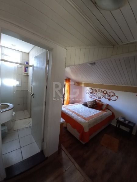 Dois blocos em volta da piscina, um possui amplo living com lareira e banheiro social, o outro com salão de festas que conta com churrasqueira, forno de barro, fogão a lenha, mesa de sinuca, além de um banheiro e um dormitório no segundo piso.
