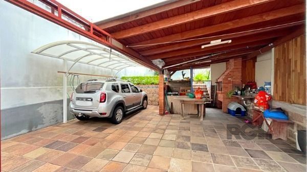 O pátio amplo conta com uma piscina, perfeito para desfrutar dos dias ensolarados com conforto e lazer. A garagem coberta oferece espaço para estacionamento seguro.