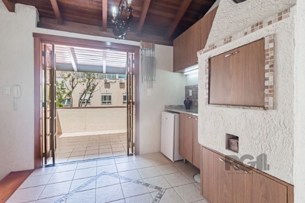 A cozinha integrada ao living é prática e funcional, garantindo uma convivência fluida entre os ambientes. Para os momentos de lazer, a casa conta com uma área gourmet com churrasqueira e um terraço, perfeito para desfrutar de refeições ao ar livre. Além disso, há uma brinquedoteca que pode ser facilmente convertida em um home office, oferecendo versatilidade de uso. A casa também possui lavanderia e um jardim encantador, com árvores frutíferas, que trazem um toque de natureza ao espaço.
