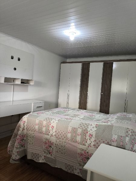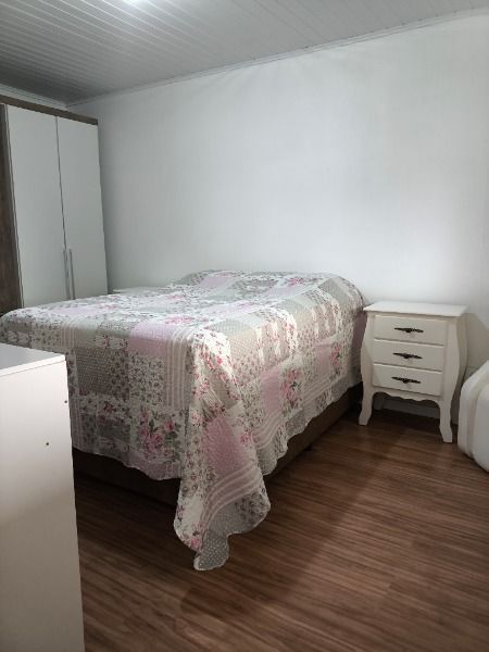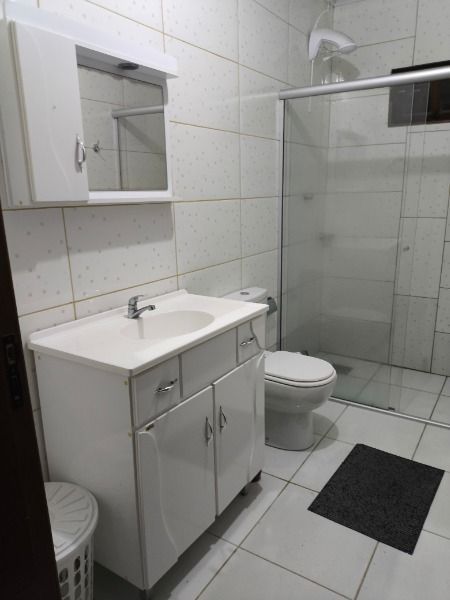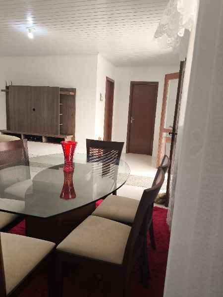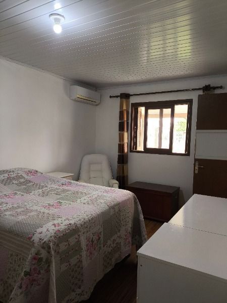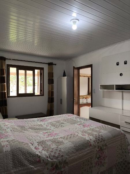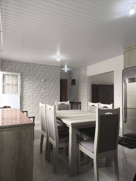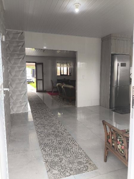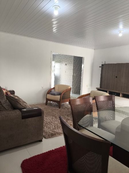 Excelente casa alvenaria 110m2, com dois quartos, um deles com ar condicionado 9mil BTUs, dois banheiros com box e armários, sala estar/jantar, lavanderia com armário/dispensa grande, cozinha modulada com fogão embutido de 5 bocas e forno duplo, depurador, churrasqueira e porta lenha, porcelanato piso e parede.