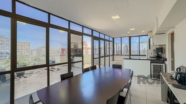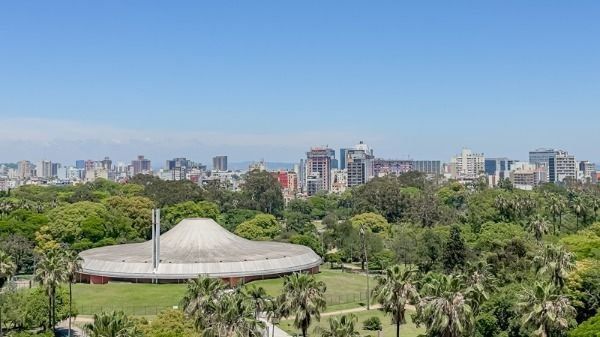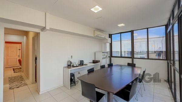 A sala dispõem de 121,55 m² distribuidos em 4 ambientes muito amplo, sendo 2 salas individuais, 1 banheiro, dispensa, sala de reunião integrado ao um espaço gourmet com vista para o Parque Farroupilha, totalmente equipado com forno elétrico, fogão por indução, móveis sob medida. Ar-condicionado. 1 Vaga. Agende sua visita!