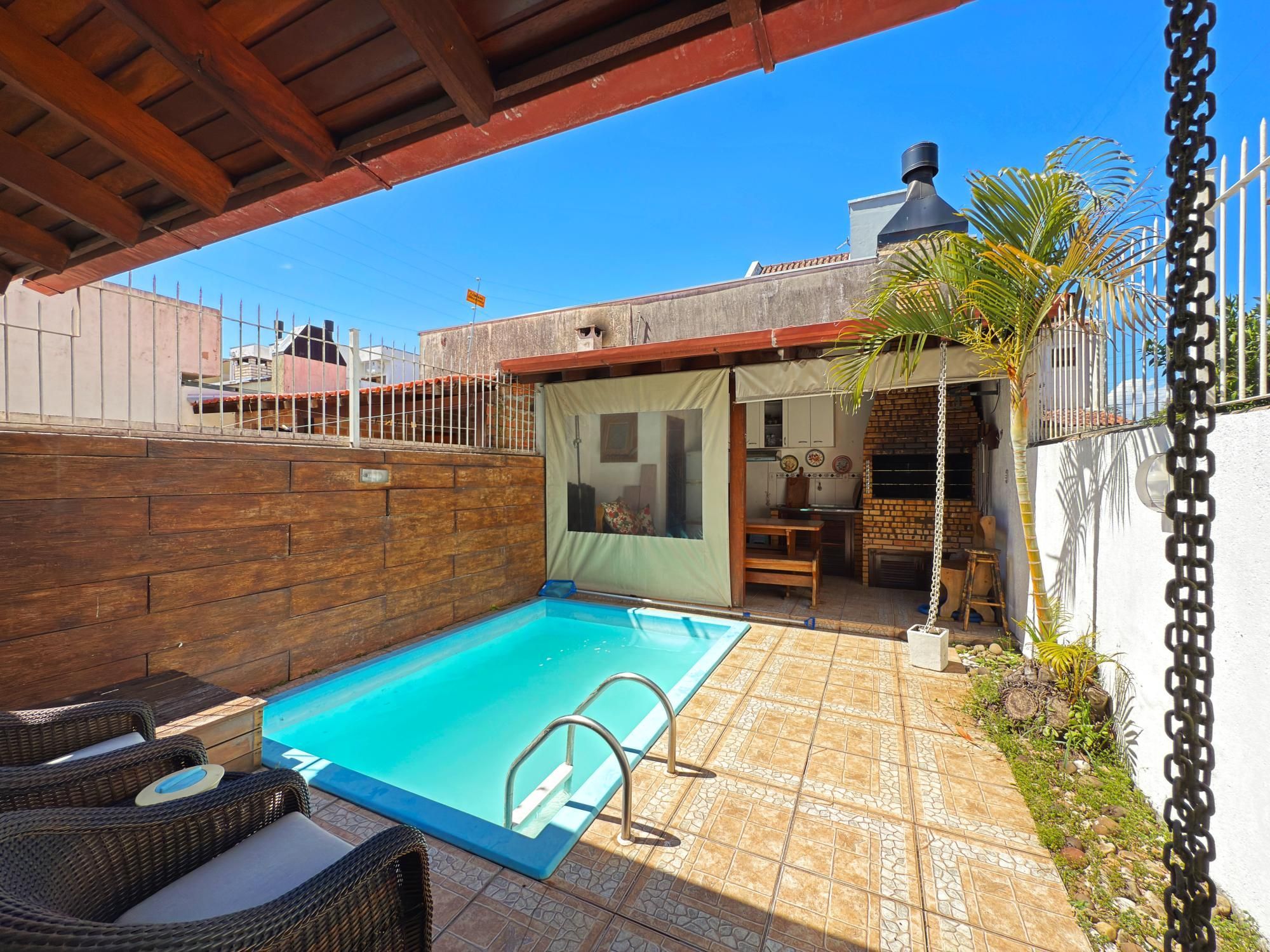 Lindo sobrado com 03 dormitórios, sendo 01 suíte, 01 banheiro na parte superior. Na parte inferior: 01living, 01 cozinha estilo americana, 01 lavabo. No pátio uma linda piscina para seu conforto. Ao fundo um aconchegante espaço gourmet com churrasqueira, pia e 01 lavabo. Espaço para colocar forno, fogão e geladeira. Vaga para 02 veículos descoberta.