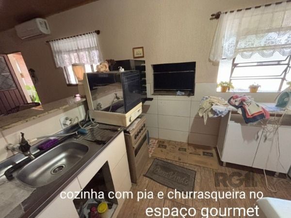 A residência possui 03 dormitórios, (quarto da frente com ar condicionado), 01 sala ampla( 02 ambientes) 01 cozinha, 01 banheiro com box em vidro. A residência conta com 01 ampla área gourmet que possui 01 cozinha estilo americana com pia, 01 churrasqueira, 01 banheiro com box, varanda para colocação de rede. Ao fundo 01 piscina gradeada com espaço para cadeiras e guarda-sóis. 02 vagas cobertas para veículos, sendo uma delas totalmente fechada na parte dos fundos do imóvel, onde também se encontra o canil. Na parte da frente a casa possui 01 porão que pode ser usado como depósito, jardim, grades de segurança e portão eletrônico.