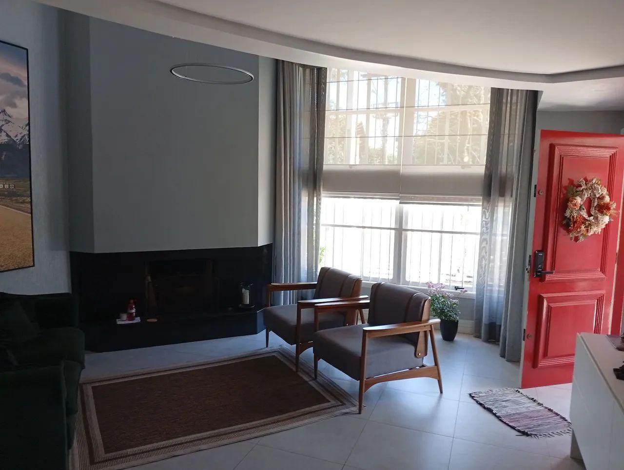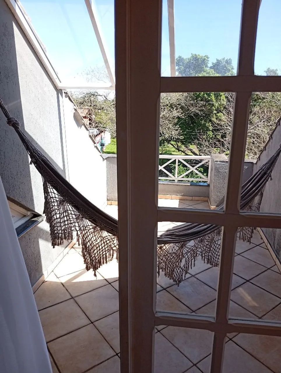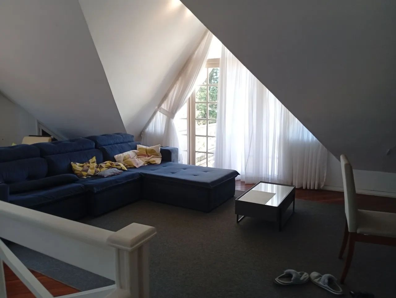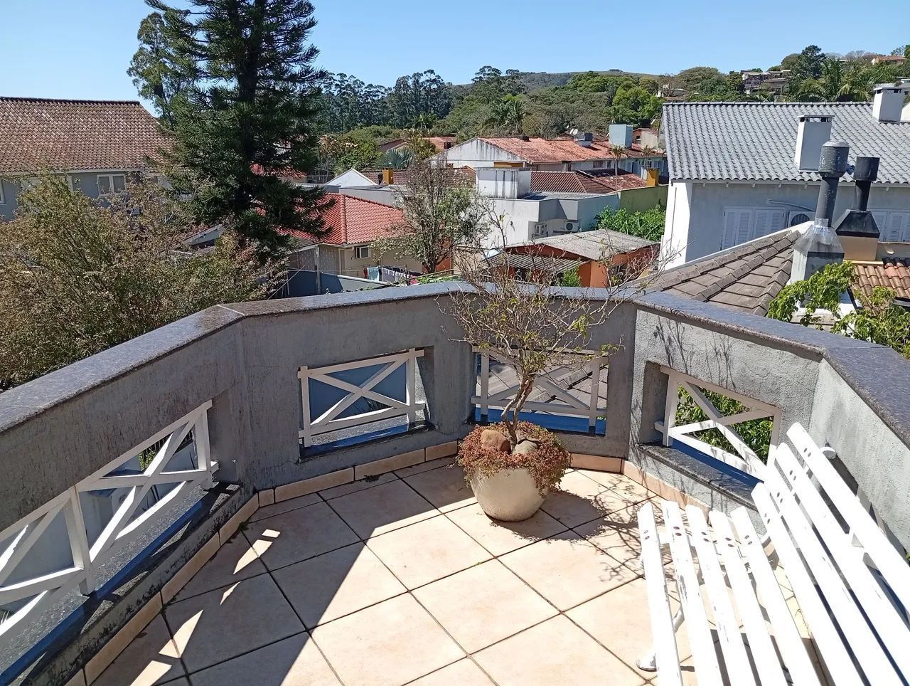 4 dormitorios sendo uma suíte com de 20 M² hidromassagem e banheiro social. Uma Sacada. Andar superior uma sala de Tv e dois escritório separados com ar e porta fechados para home office e tem duas áreas de terraço, com placas solares no telhado. A casa dispõe de uma ampla cozinha mobiliada, copa cozinha e lavanderia. Salão de festas com churrasqueira e amplo pátio com piscina . Piso em tabuão de verdade muito bem conservado e tabuão nas escadas. Temos uma praça na frente da casa