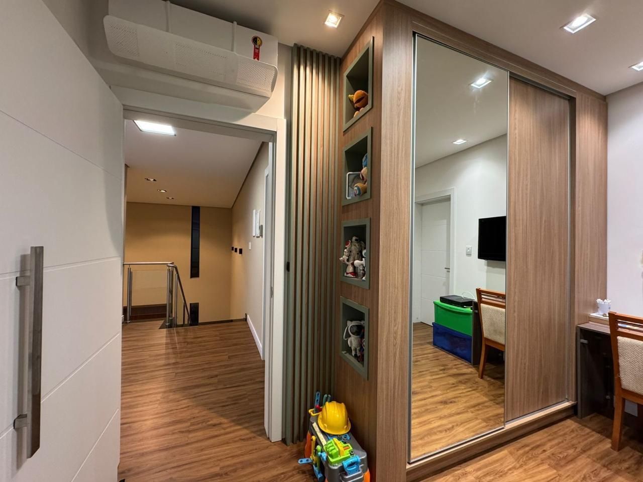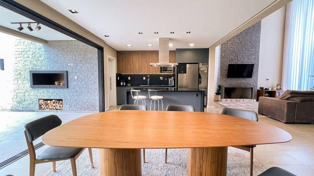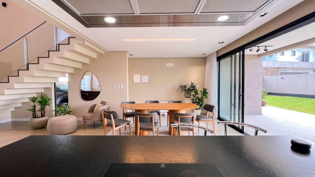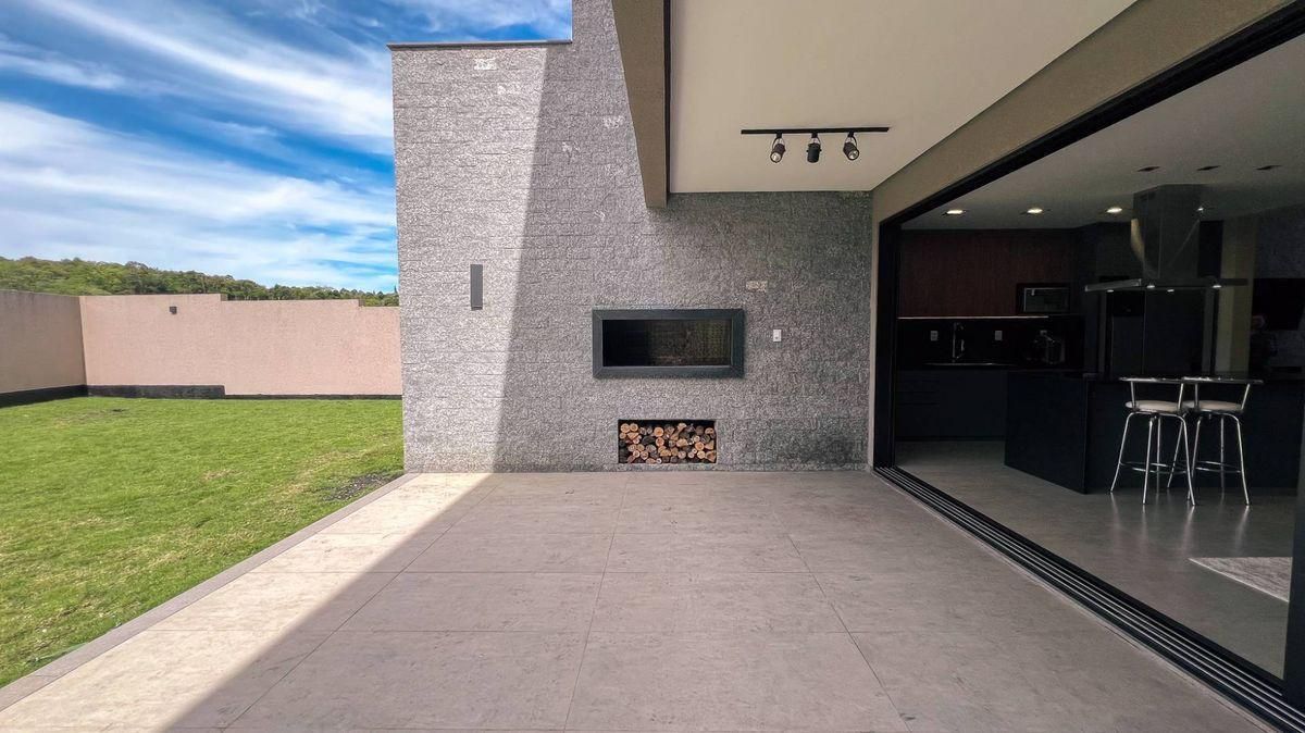 Casa de alto padrão no condomínio Prado Los Álamos em Gravataí com 300m2 de área construída e semimobiliada, em frente à praça. 4 suítes, sendo 1 suíte térrea com antessala (escritório) e 1 suíte master com closet e sacada com vista para a praça. Garagem coberta para 3 carros, 1 lavabo, lavanderia com despensa, living com pé direito duplo e cozinha integrada. A casa ainda conta com varanda coberta, amplo pátio ajardinado e depósito. Diferenciais: Persianas automatizadas, sistema de geração de energia solar, aquecimento de água solar, sistemas de iluminação e ar-condicionado automatizados e cabeamento de rede em todos os ambientes. Ótima posição solar.