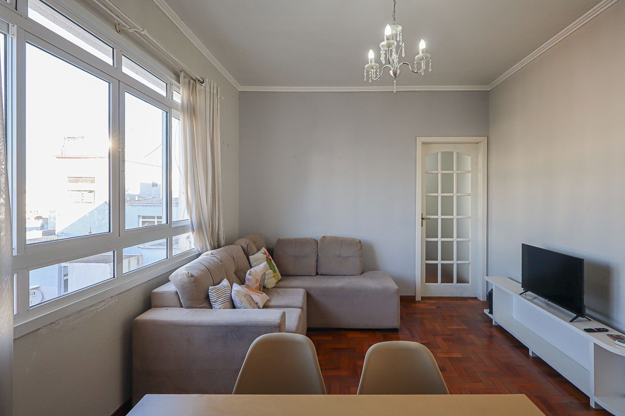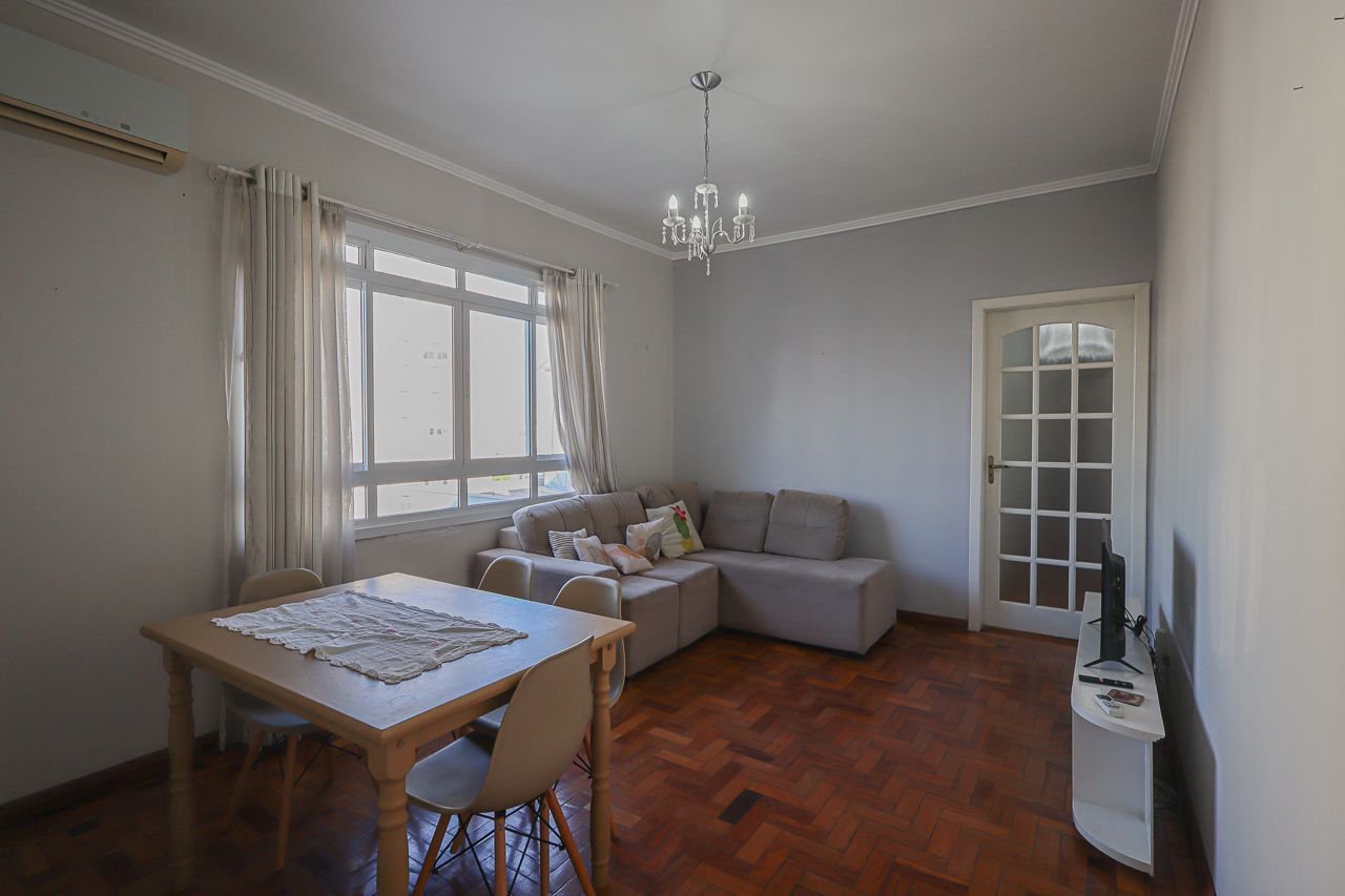 Apartamento semimobiliado com 73 m² de área privativa com 2 dormitórios, banheiro social com ventilação natural, living amplo para 2 ambientes, sol da manhã, cozinha montada com área de serviço. Não possui vaga de garagem.