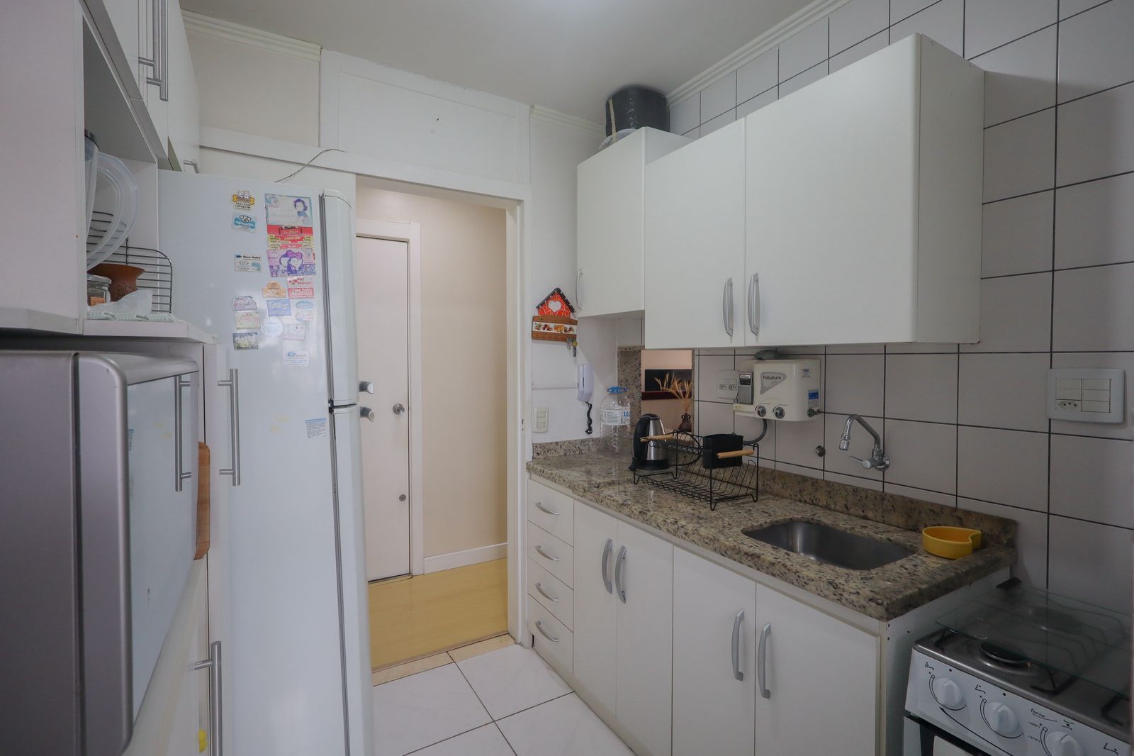 Condomínio conta com elevador, playground, salão de festa, portão eletrônico e portaria 24 horas.