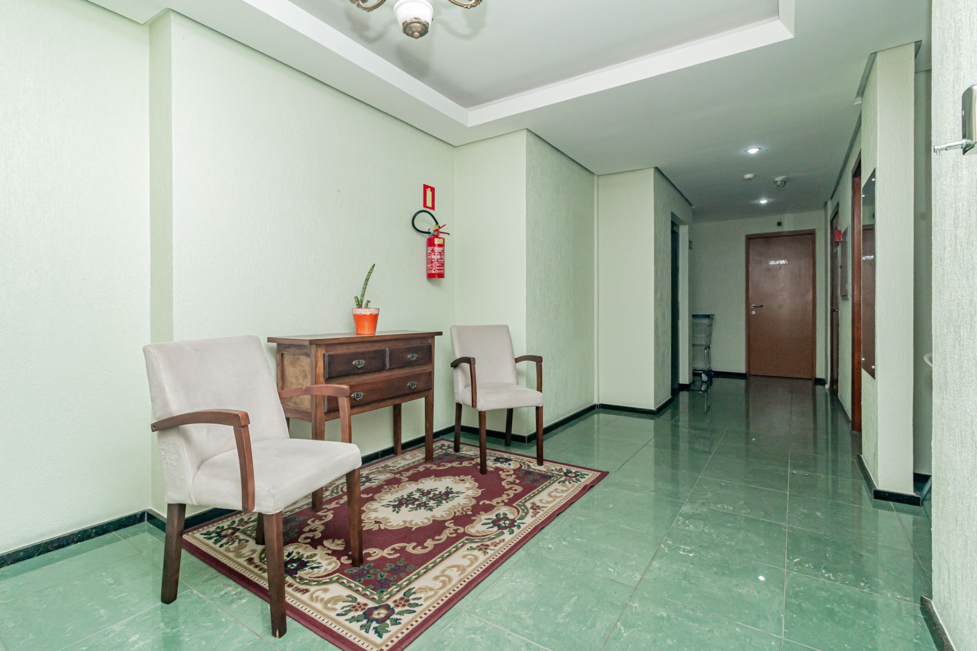 O condomínio conta com elevador, zelador e portão eletrônico.