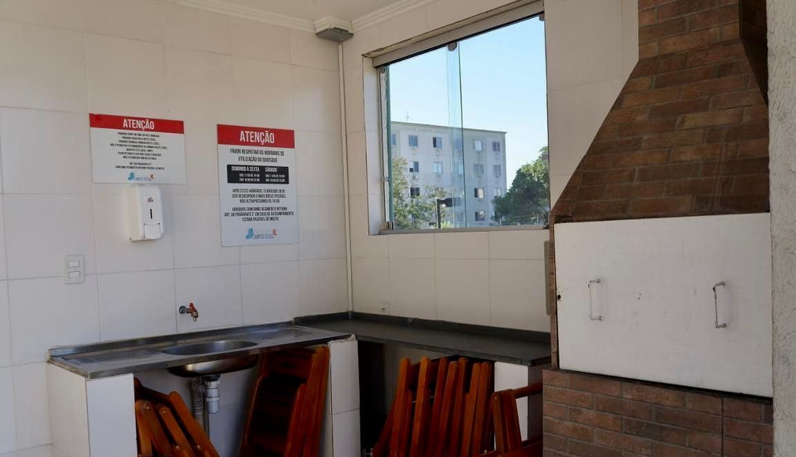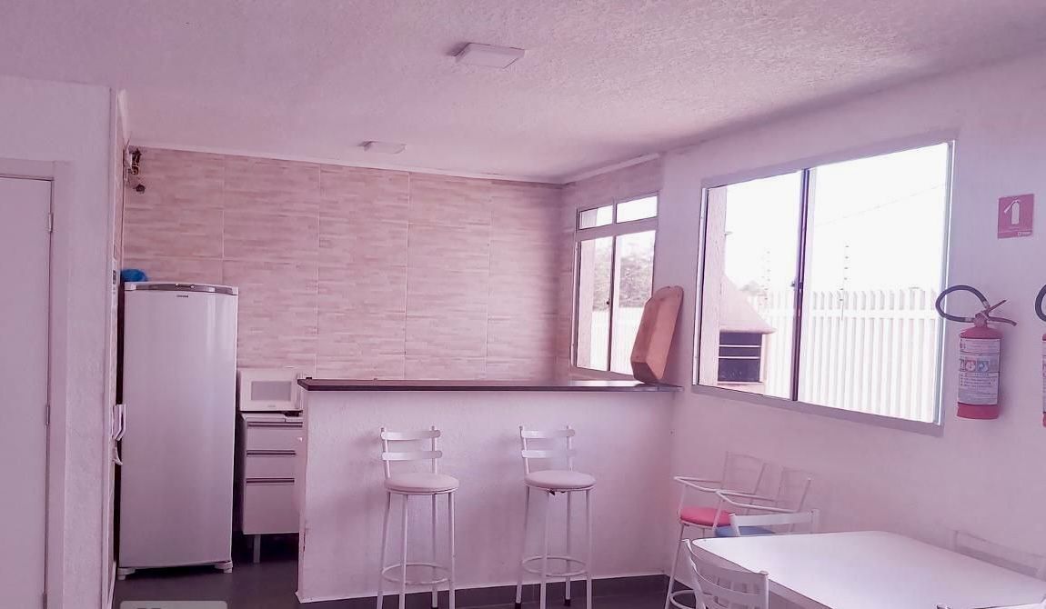 O imóvel conta com 2 quartos, sala de estar, jantar e cozinha funcional integradas, fica no terceiro andar prédio com 5 andares, o condomínio oferece salão de festas, espaço gourmet, playground, espaço pet.