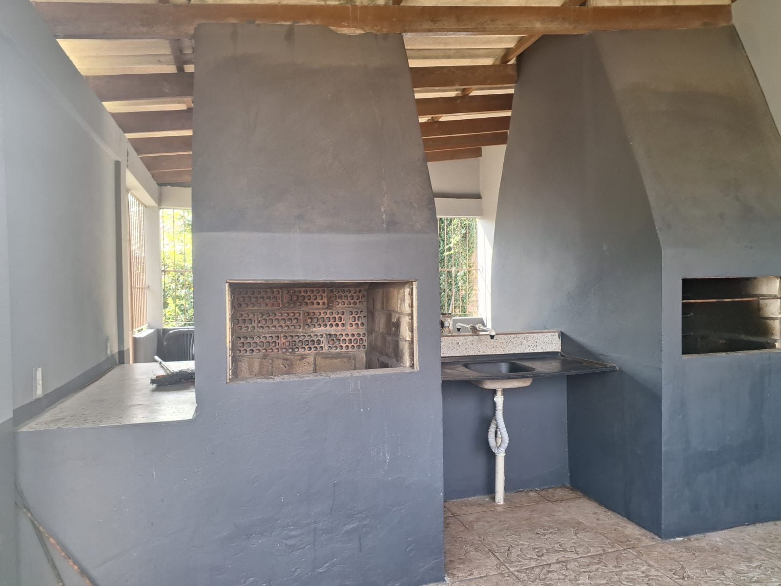 48m com 2 dormitórios, sendo banheiro, sala estar e jantar, cozinha com área de serviço, banheiro social.