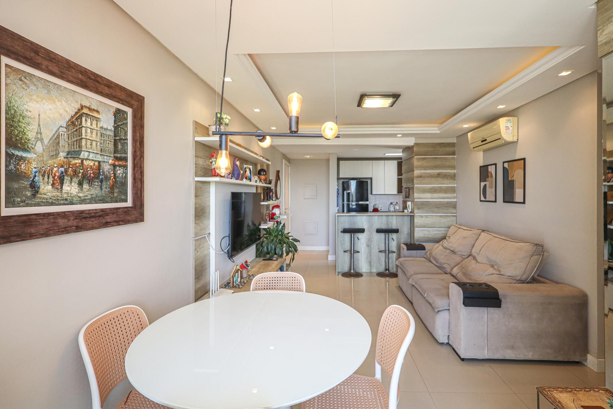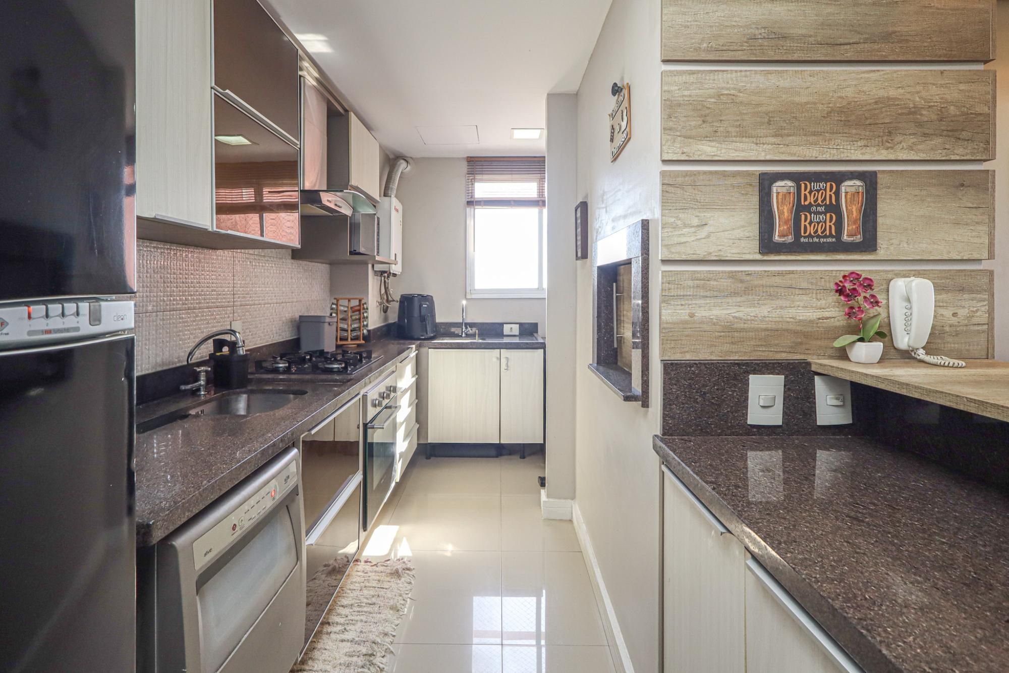 Apartamento em andar alto com 76 m² de área privativa com 3 dormitórios sendo 1 suíte, banheiro social, living amplo para 2 ambientes com sacada integrada, sol norte, cozinha americana com churrasqueira e área de serviço. Possui 2 vagas de garagem lado a lado.