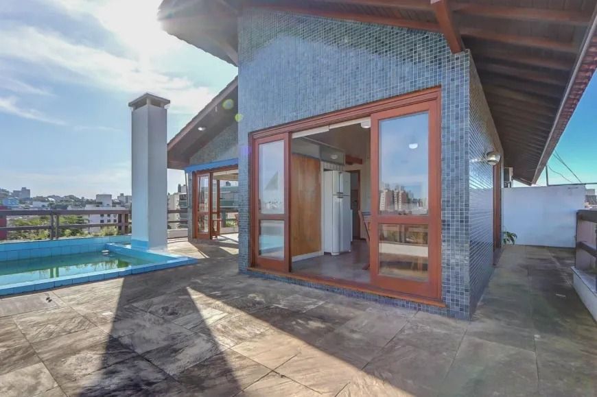 Conta ainda com 3 vagas de garagem cobertas, ideal para famílias com mais de um veículo. Para momentos de lazer, o imóvel possui lareira, churrasqueira e uma piscina privativa, garantindo momentos de descontração sem sair de casa.