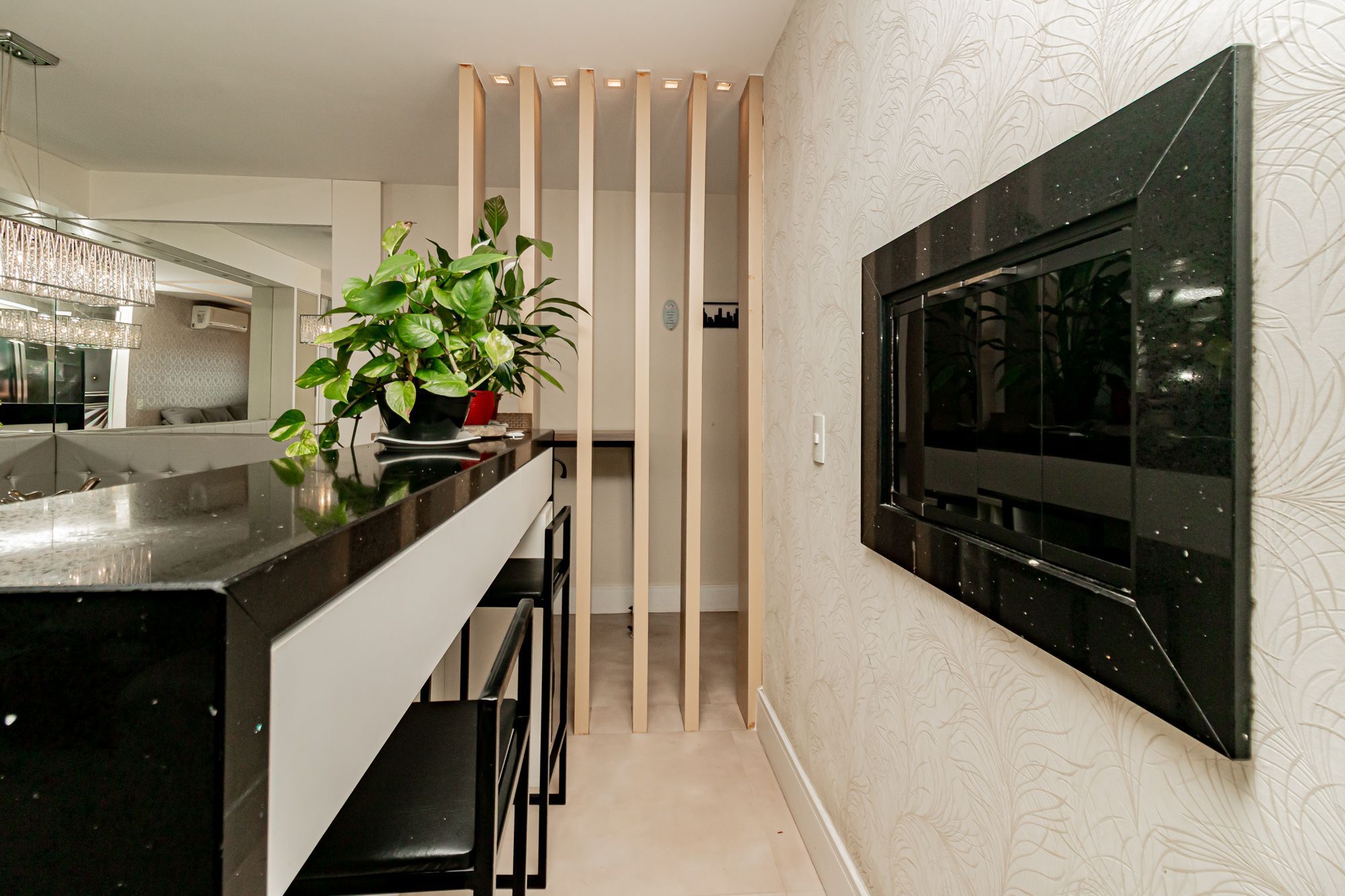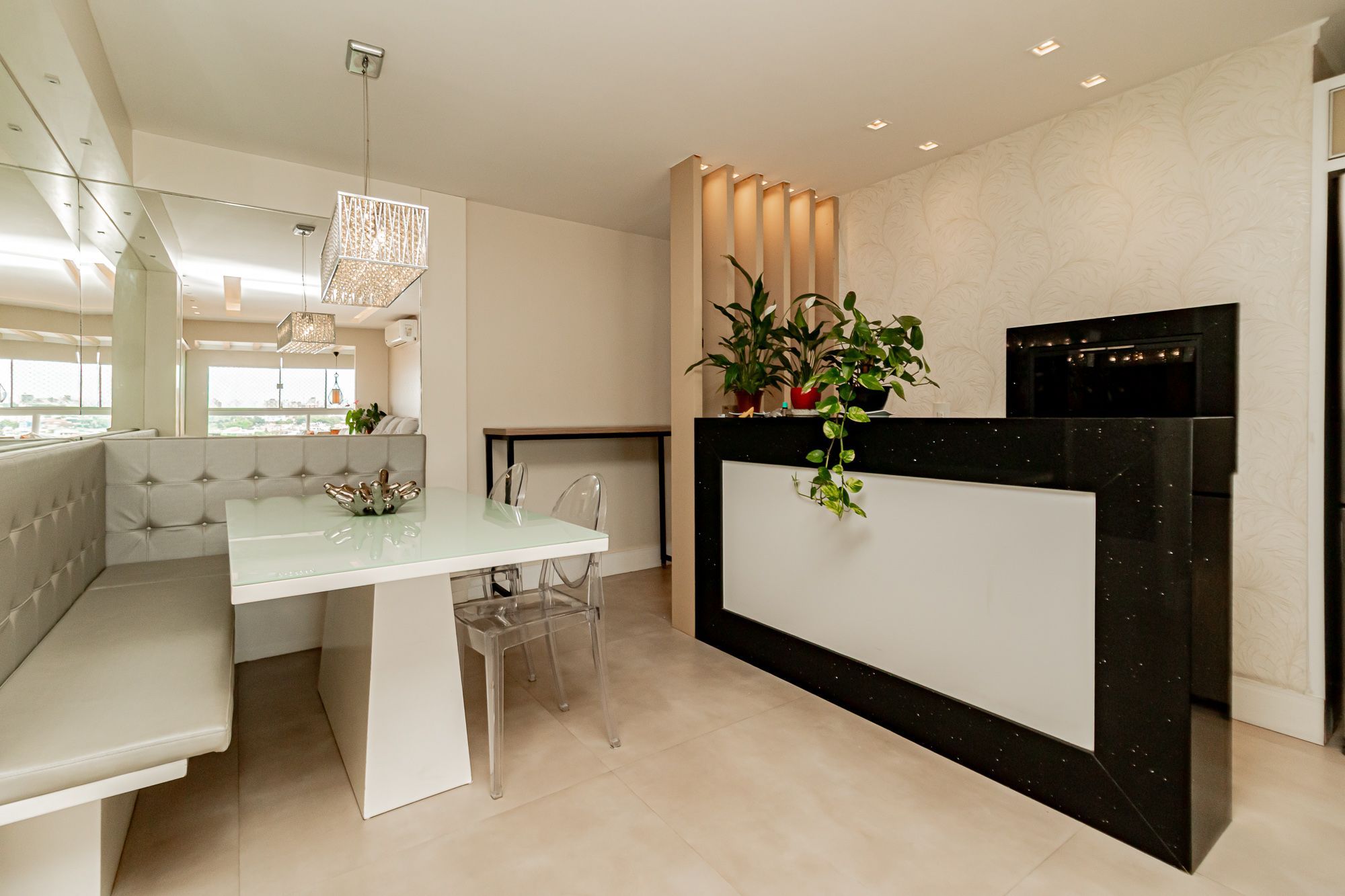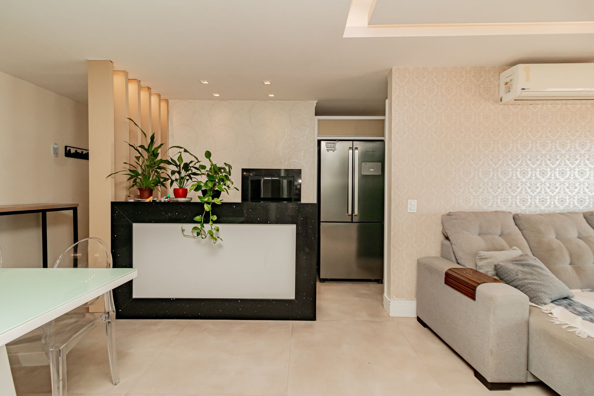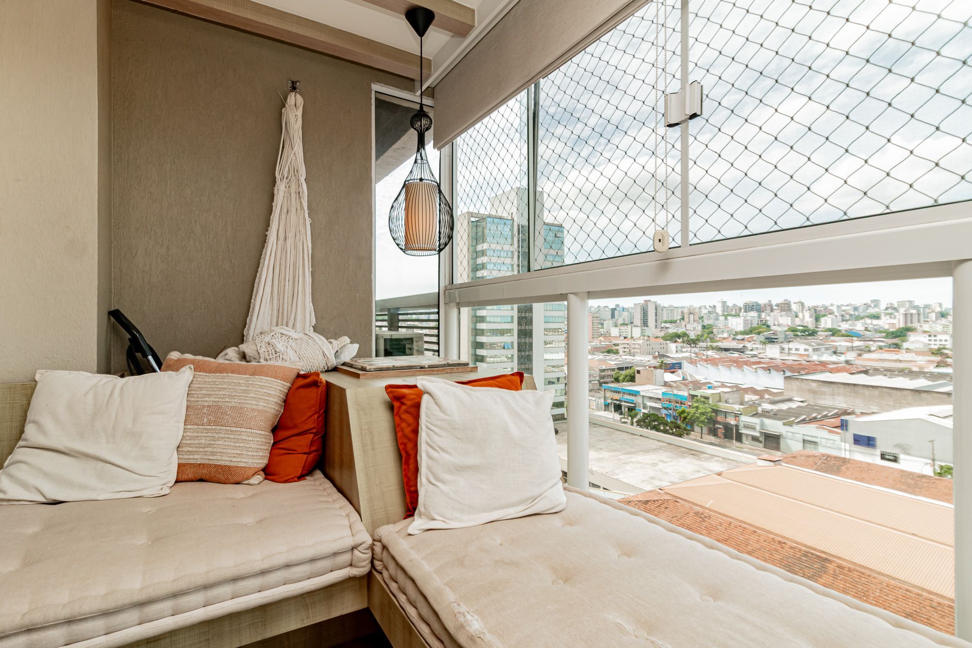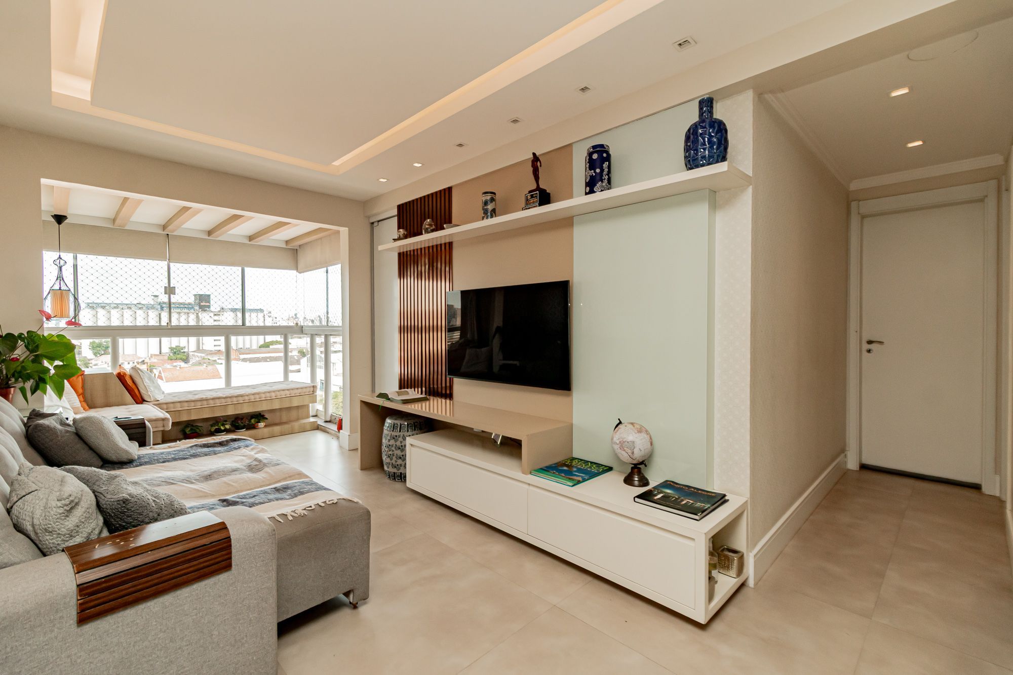 Totalmente mobiliado, living amplo com sala de estar e sacada integrada.