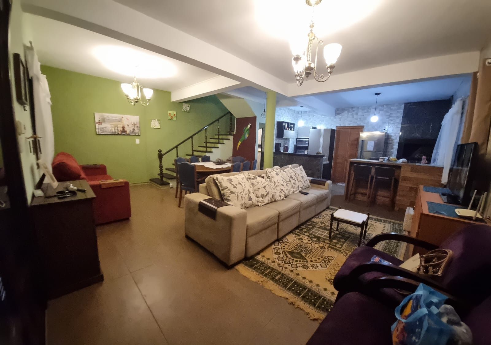 Sala integrada com cozinha.