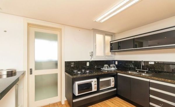 Ótimo apartamento no bairro Higienópolis, andar alto, lateral, com 83m² privativos, de 2 dormitórios (transformado em 1 dormitório podendo ser revertido) e 2 vagas. Possui sala ampla para 2 ambientes (living estendido com o 2º dormitório), 1 dormitório/suíte, banheiro social, cozinha americana mobiliada e com churrasqueira e área de serviço separada. Água quente na cozinha e banheiro. Ficam móveis e eletros. Imóvel muito ventilado, iluminado e com vista maravilhosa para o Guaiba. Possui 2 vagas de garagem escrituradas e cobertas (lado a lado). Condomínio com portaria 24h, elevadores, gás central, brinquedoteca, piscinas adulto e infantil, academia, salão de festas, playground e zelador. Localizado em ótima região próximo da SOGIPA, do Colégio Pastor Dohms, a poucos minutos do Bourbon Assis Brasil, com todos os recursos próximos. Aceita financiamento. Agende já uma visita.