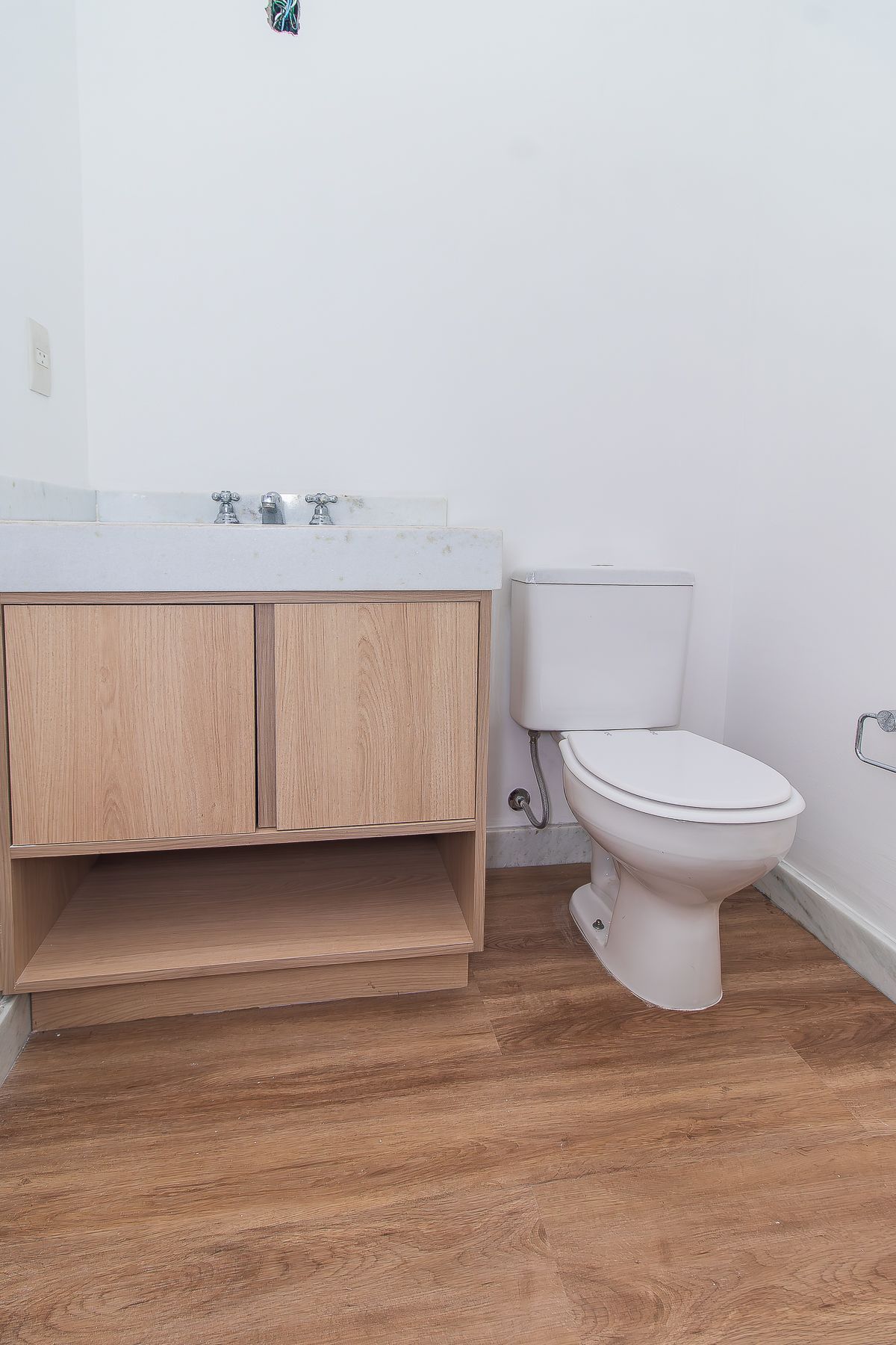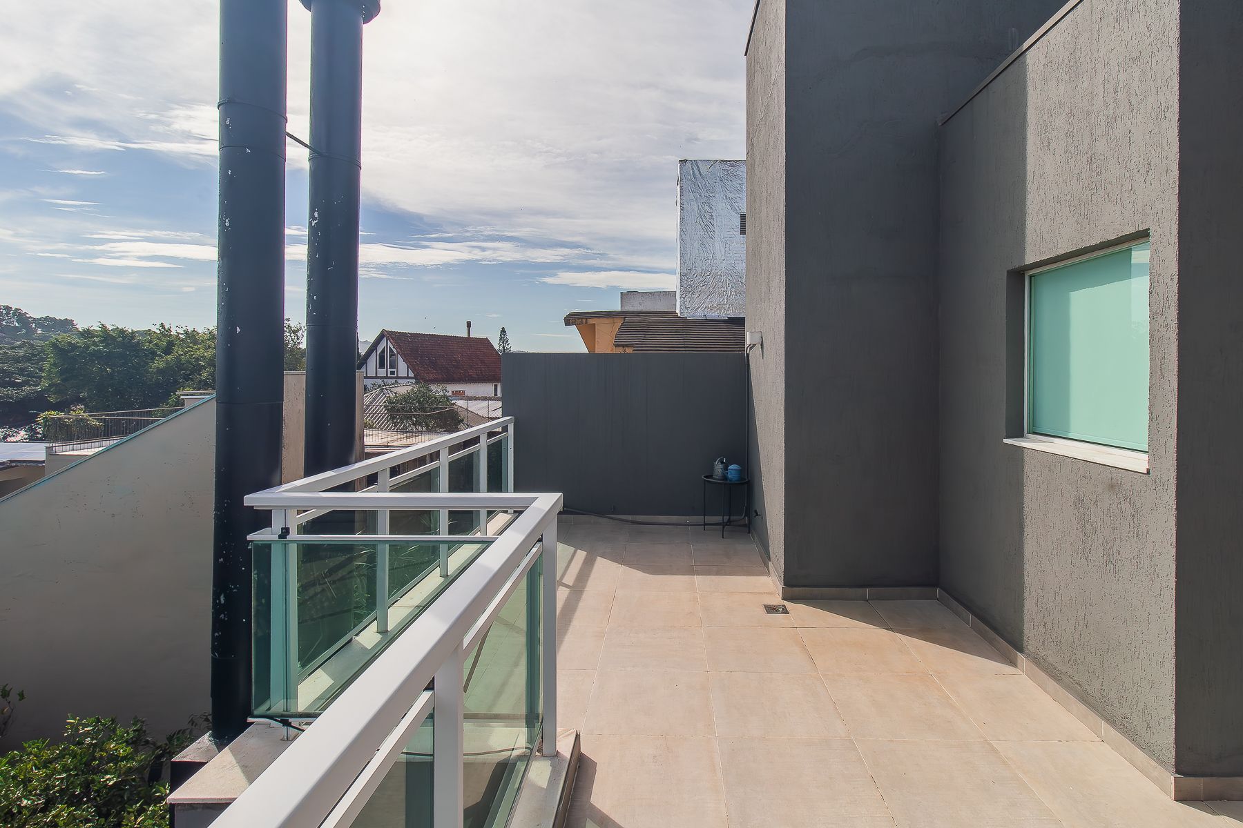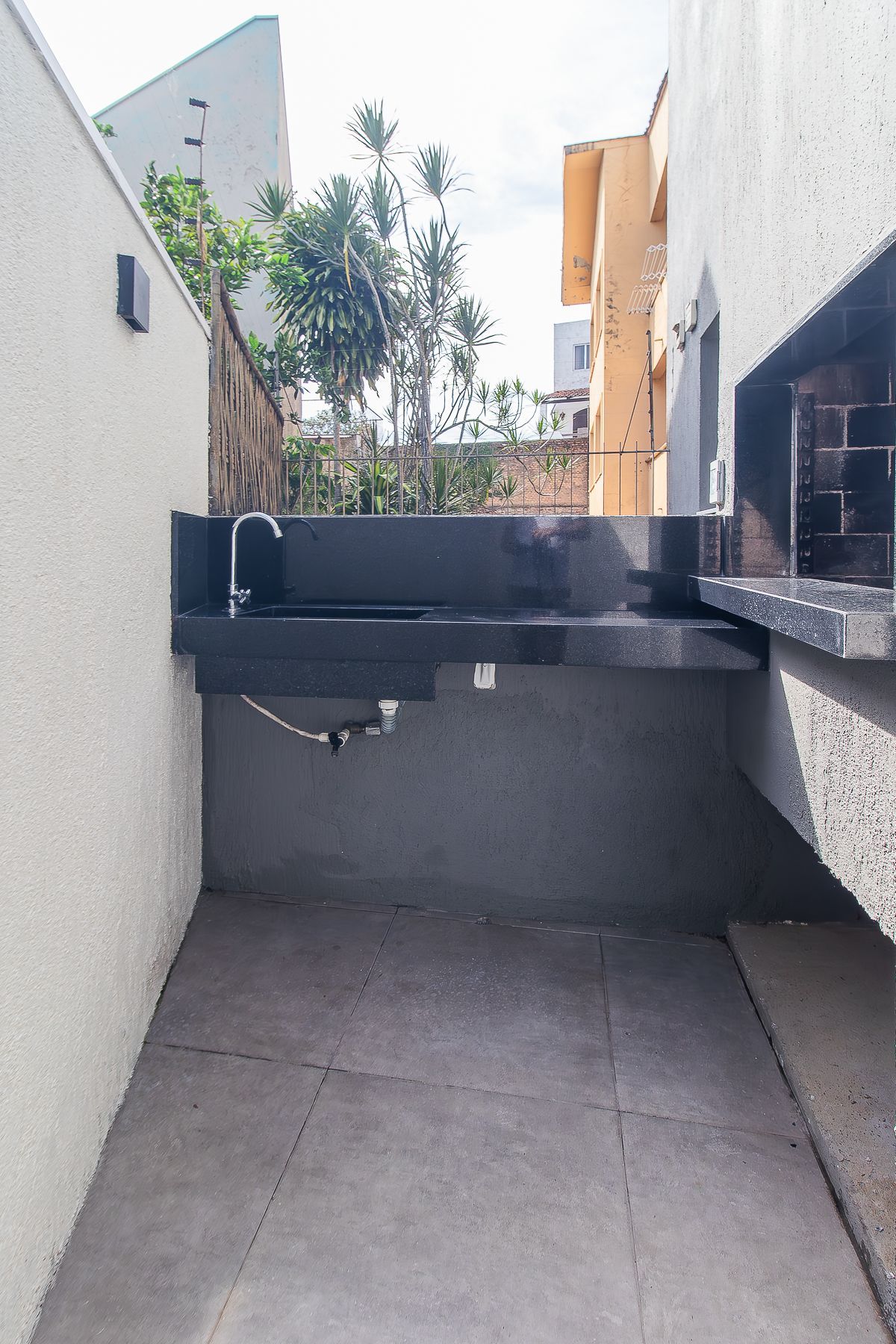 No andar térreo: garagem com 02 vagas cobertas, área de serviço completa, banheiro auxiliar, depósito e pátio com churrasqueira.