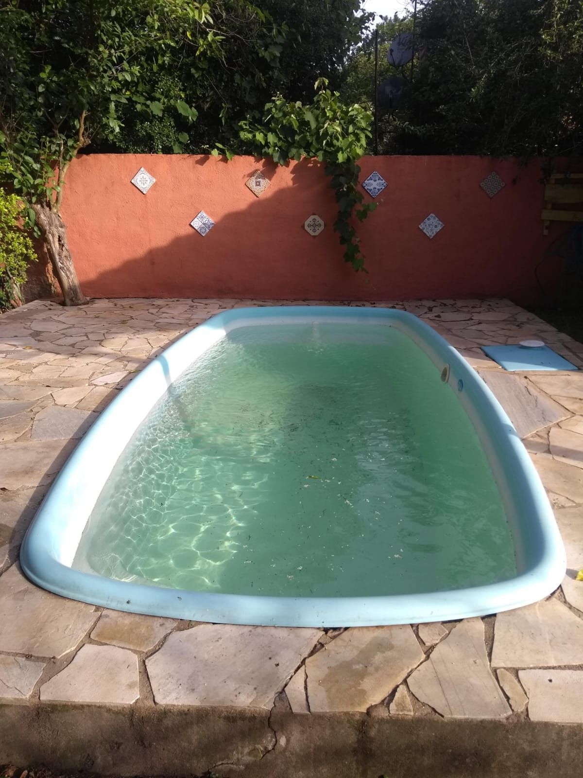 Pátio com vegetação, árvores frutíferas e uma linda piscina excelente para um encontros entre familiares e amigos.