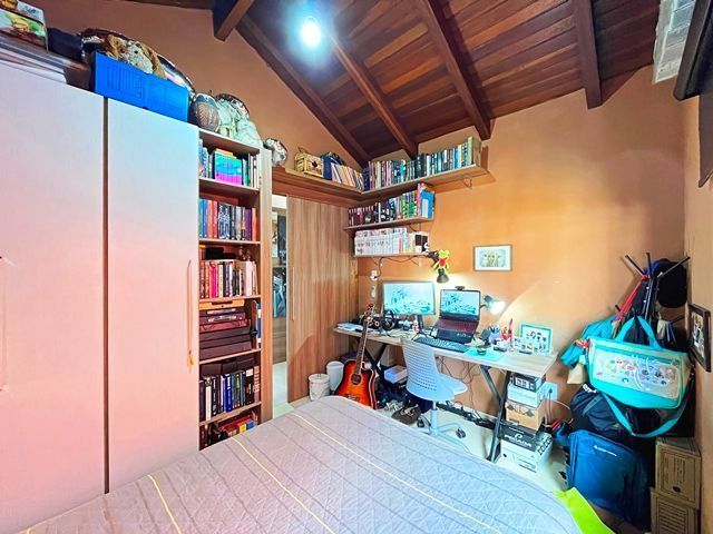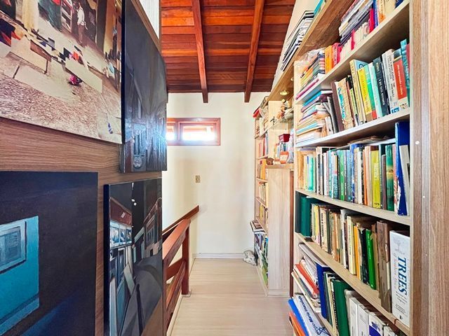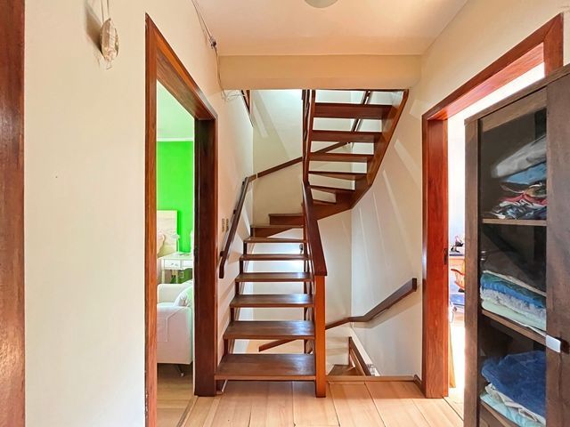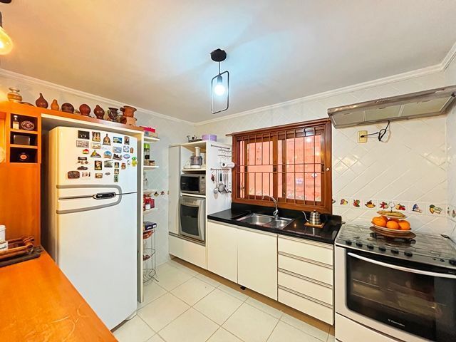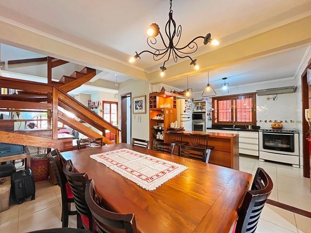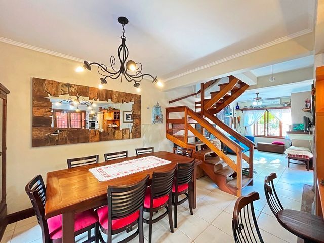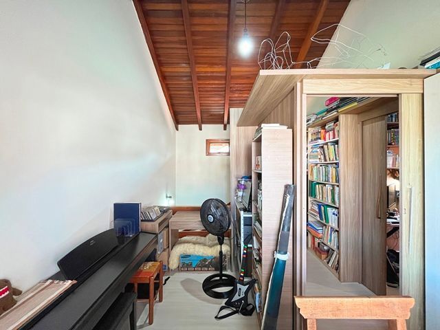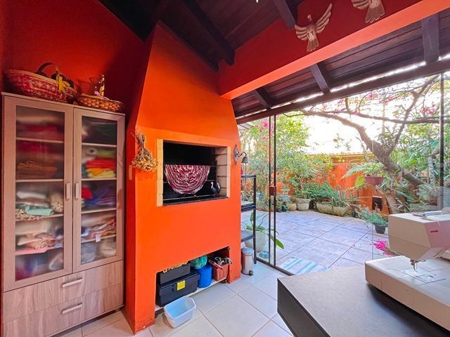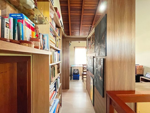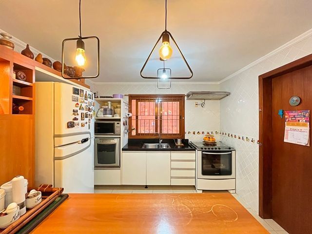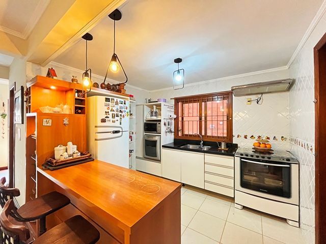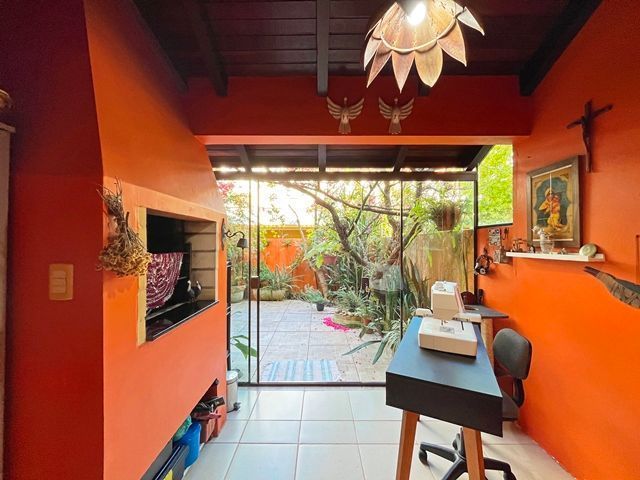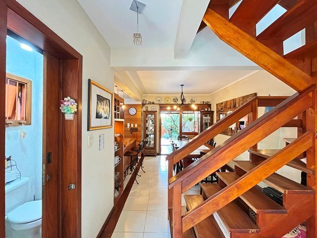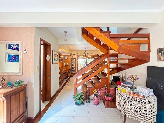 Parte térrea com living para 2 ambientes (estar/jantar), lareira e lavabo, cozinha americana montada, sótão com atelier, espaço gourmet com churrasqueira fechada e bom pátio ao fundo com espera para piscina.