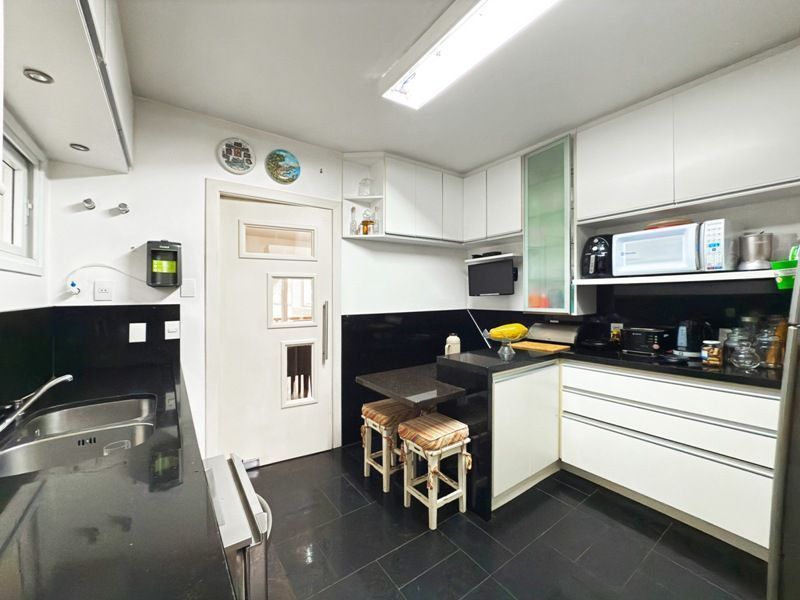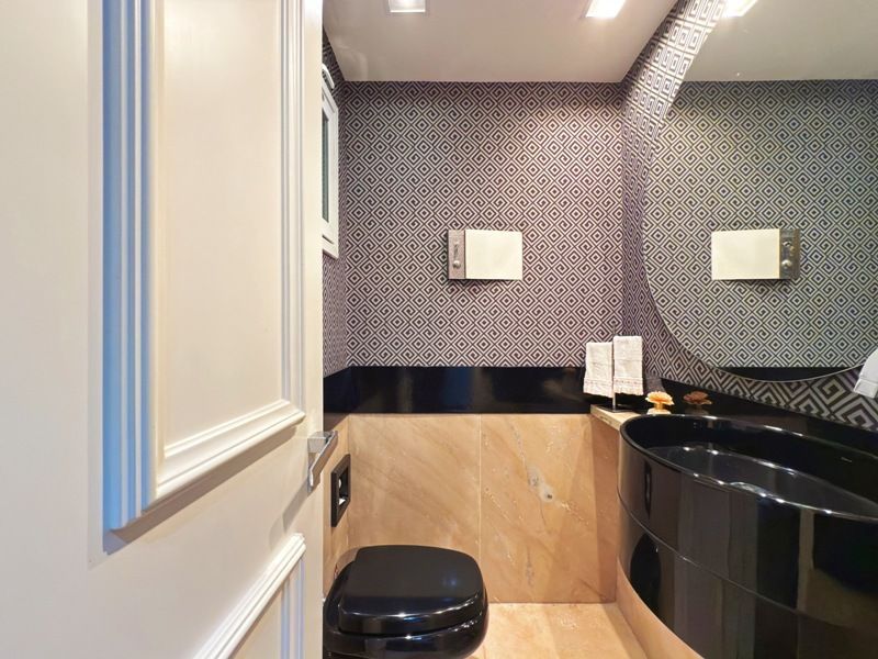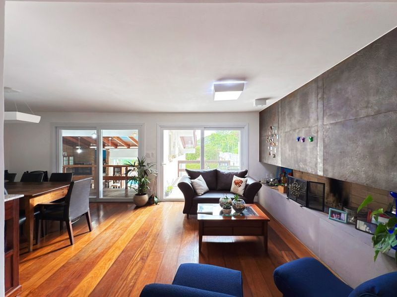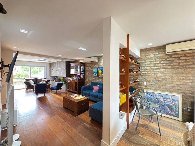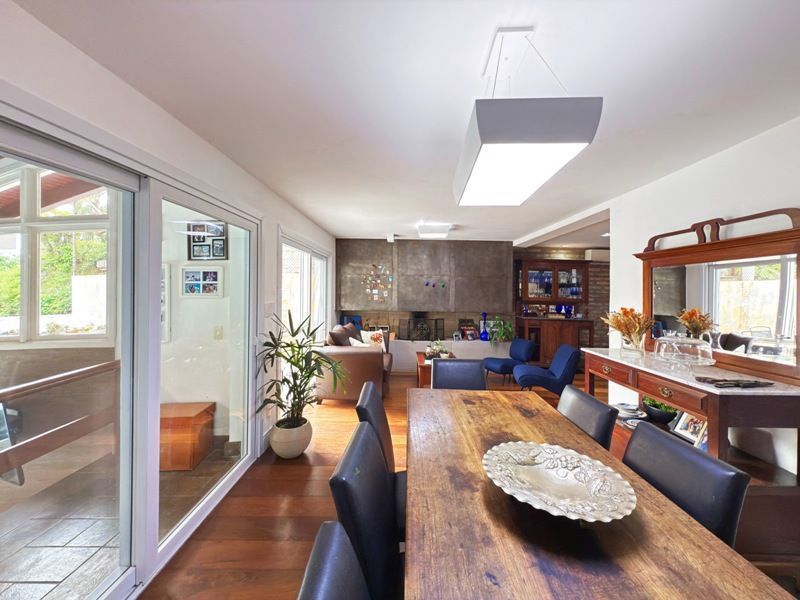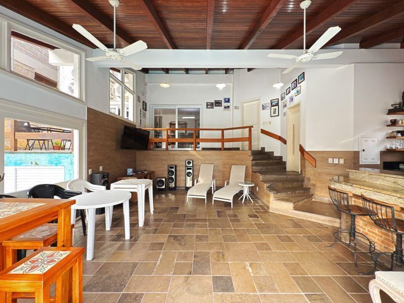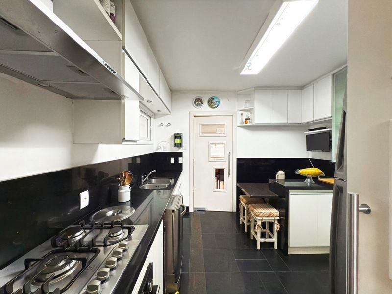 Parte social composta de duas salas muito espaçosas e lavabo, integradas ao ambiente de sala jantar e onde uma lareira diferenciada também faz parte, tendo uma porta de acesso a um amplo terraço com vista. Cozinha completamente montada.