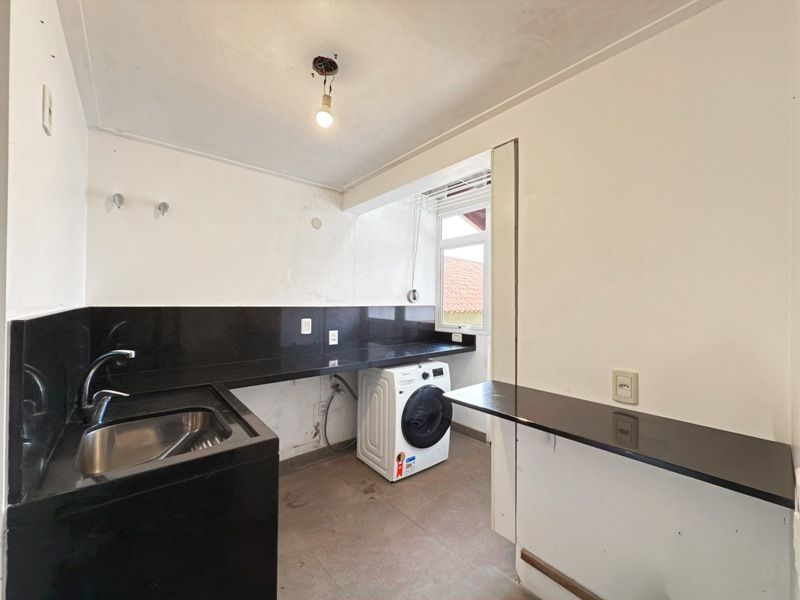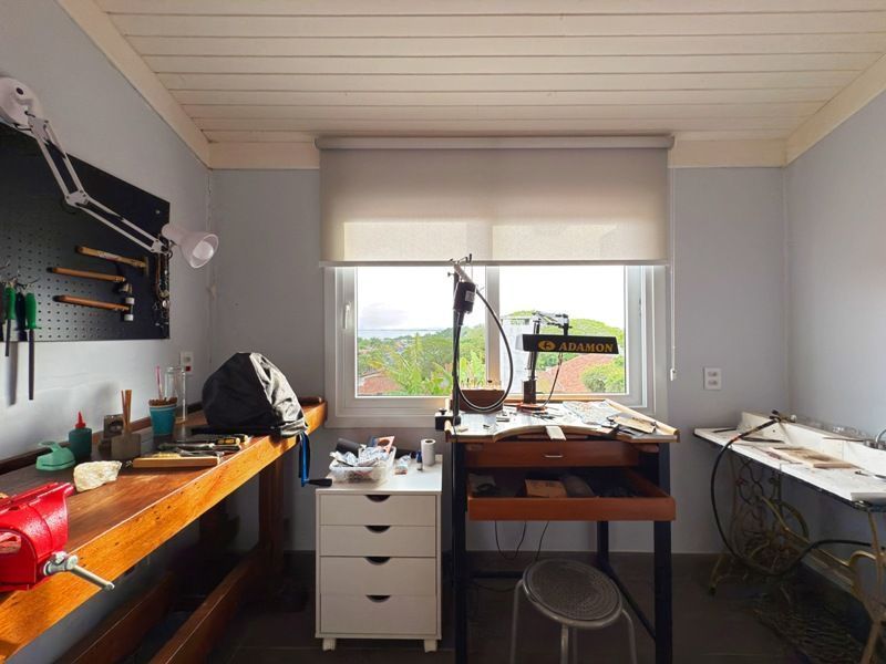 Parte de serviço com dependência de empregada completa, lavanderia, área de serviço e espaço onde funciona um atelier.