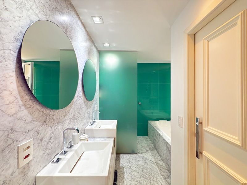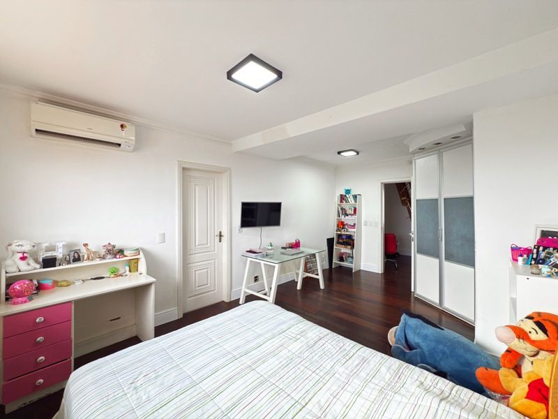 Parte privativa com 4 suítes sendo uma delas suítes americana. Suíte master com closet e banheira e outra suite também com banheira. Piso em tabuão.