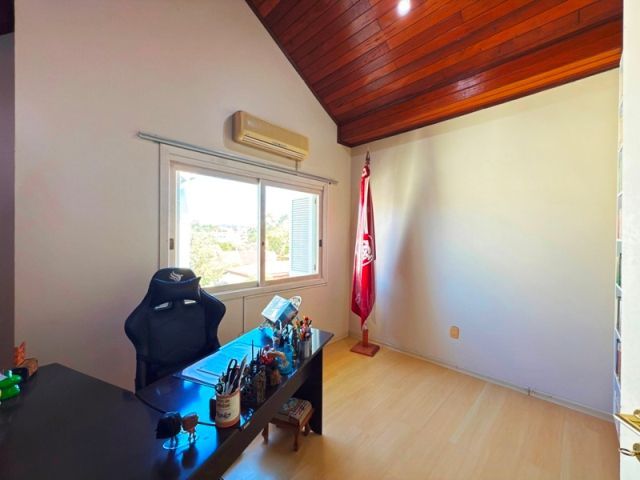 Maravilhosa e impecável casa com pátio privativo em condomínio diferenciado, com 4 dormitórios, sendo 1 suíte com banheira, banheiro social, estar íntimo, living para 2 ambientes com lareira, sala de jantar, copa-cozinha, lavabo, espaço gourmet, amplo sótão e banheiro, ficam 4 ar-condicionados. Com 2 vagas de garagem.. "PORTARIA FECHADA". Agende agora mesmo uma visita e venha realizar seu sonho.