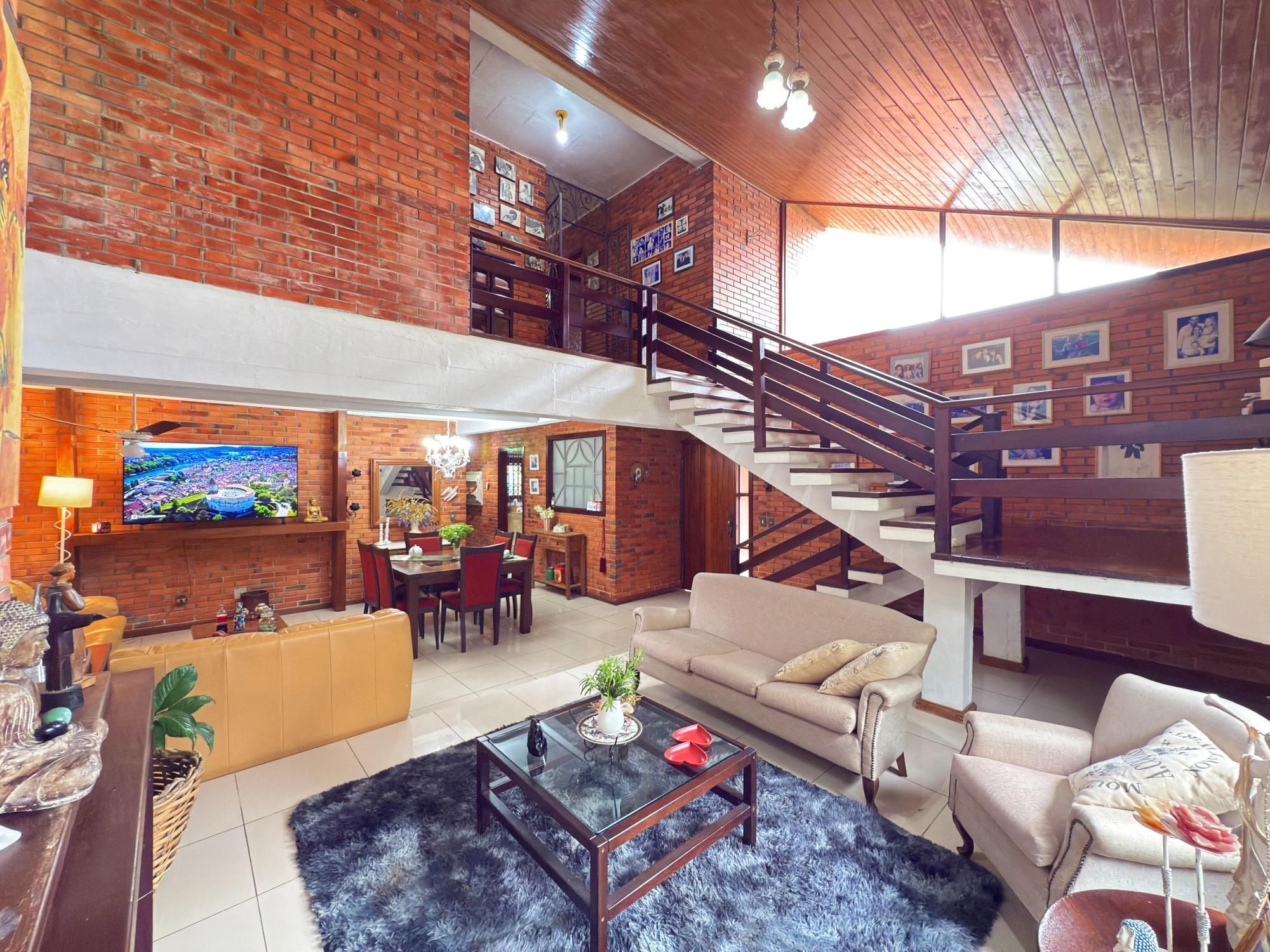 O living é amplo e bem distribuído, com ambientes definidos de estar e jantar, lareira, lavabo, cozinha com despensa, área de serviço e dependência completa.