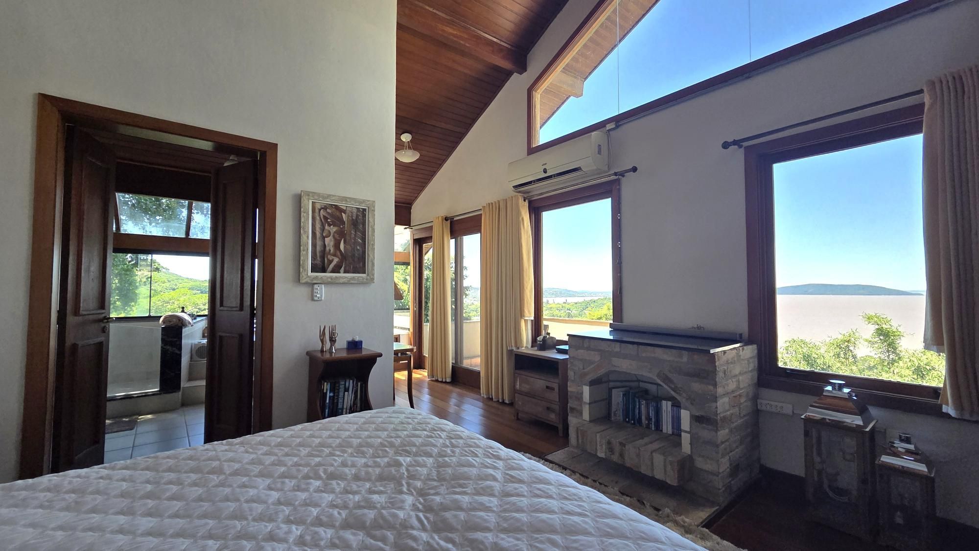 No primeiro desnível, um living com vista deslumbrante para o Guaíba. No segundo desnível, outro ambiente de estar, com lareira e sala de TV, perfeito para momentos de conforto.
