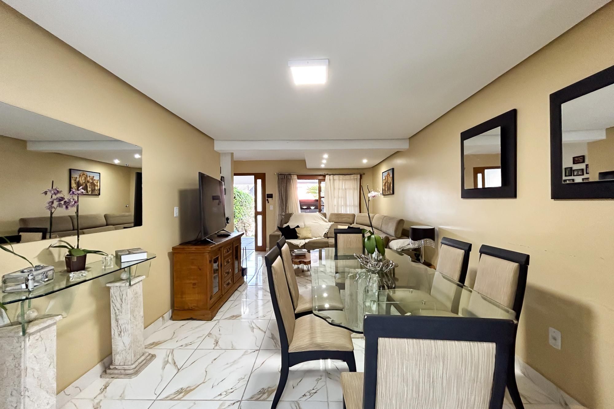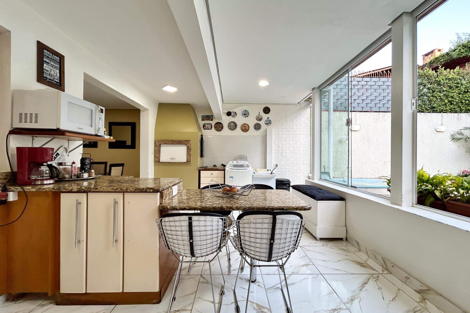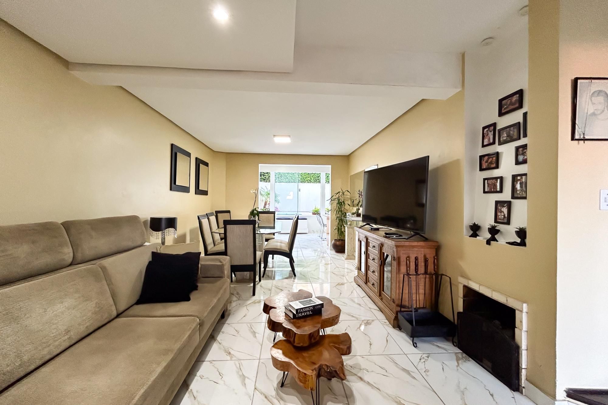 No térreo, você encontrará um living arejado com lareira, lavabo e uma cozinha equipada com móveis planejados. O espaço gourmet, que inclui uma churrasqueira, é perfeito para receber amigos e familiares, enquanto a piscina proporciona momentos de lazer e relaxamento.