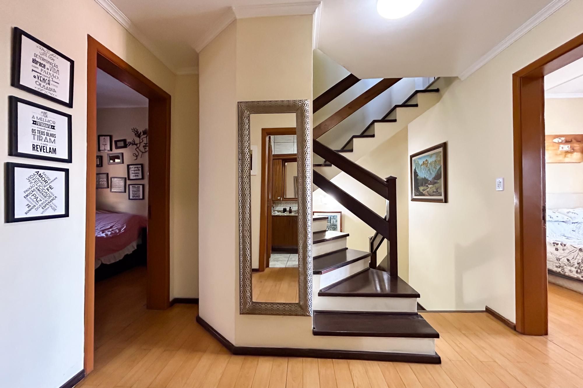 No segundo andar estão os dormitórios, todos bem iluminados e ventilados, além de um banheiro social que atende aos demais quartos.