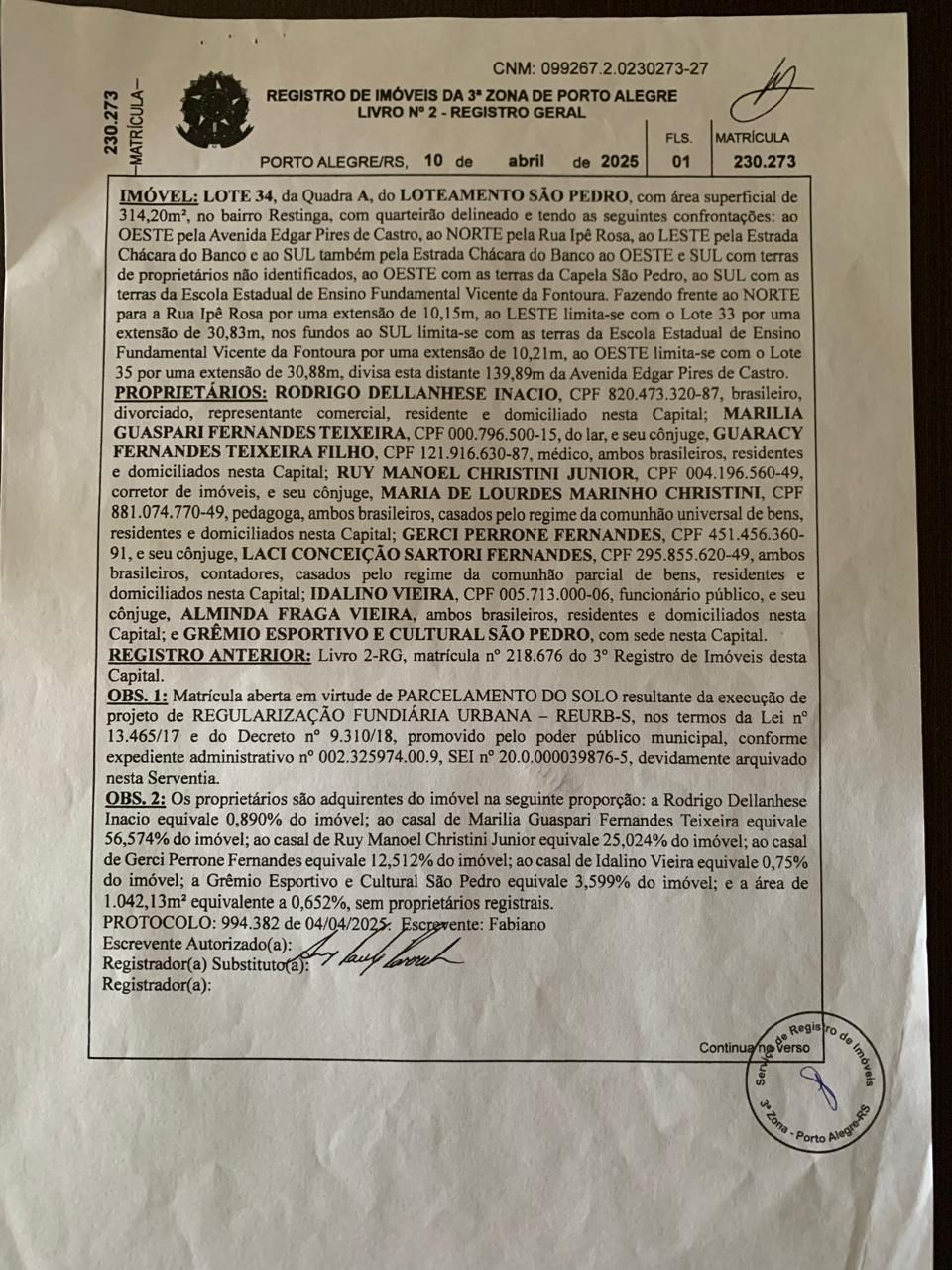 - Localização: Rua Marechal Hermes, 549, bairro Camaquã, Porto Alegre, RS