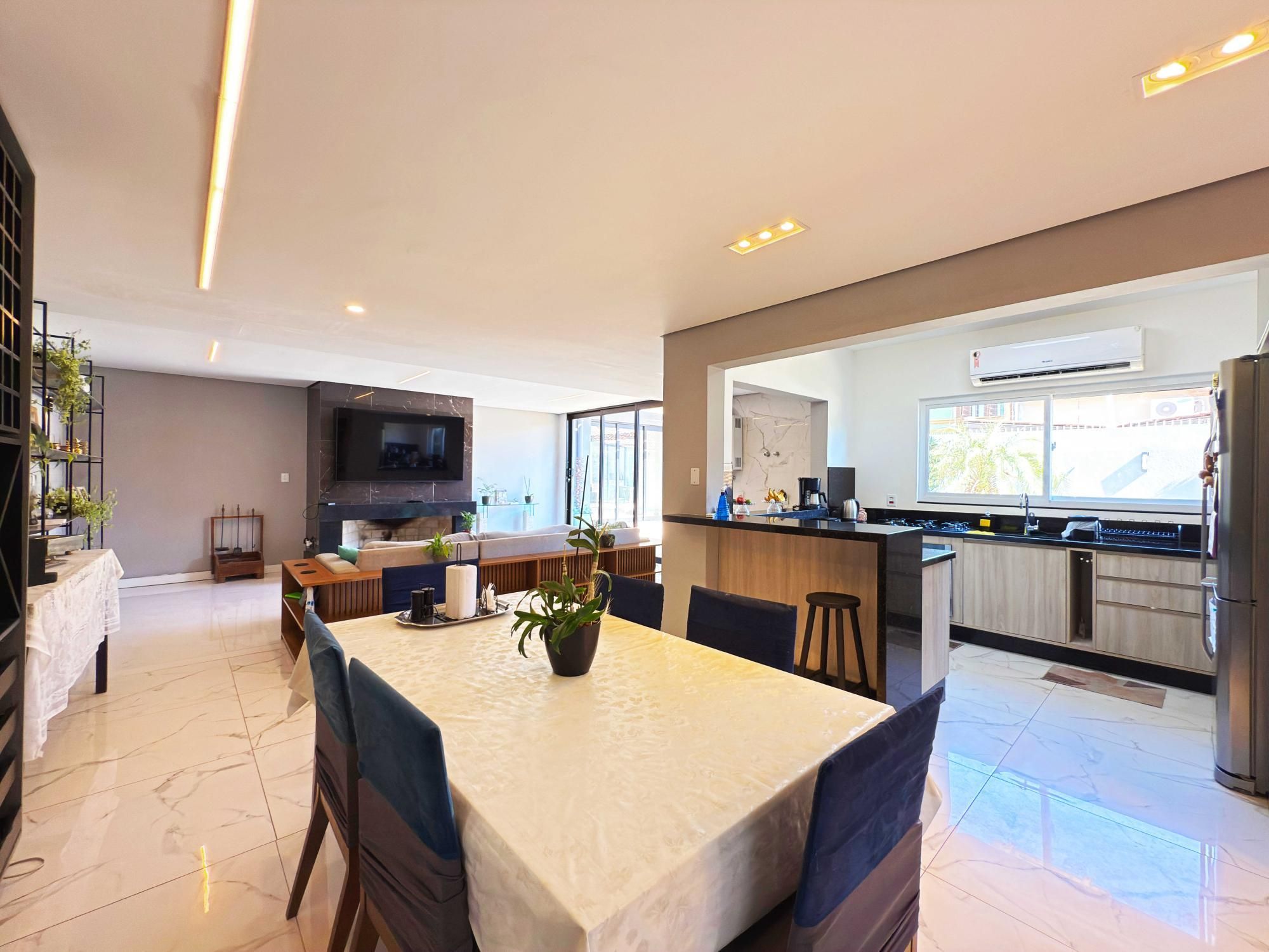 Apresentamos esta incrível residência, com 4 quartos, 3 banheiros, 1 suíte e espaço para até 6 carros na garagem, esta casa oferece lareira, sacada, área de serviço, lavabo, churrasqueira, pátio, ar condicionado, móveis planejados, piscina, salão de festas, salão de jogos e espaço gourmet.