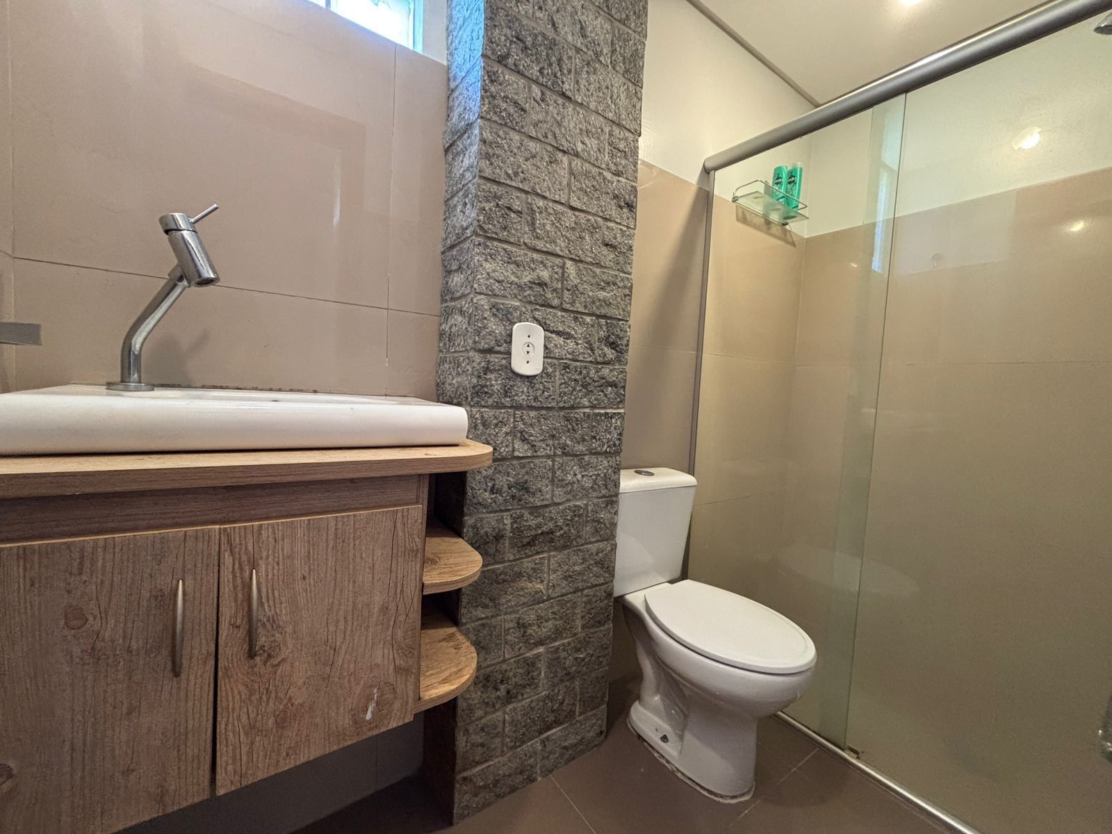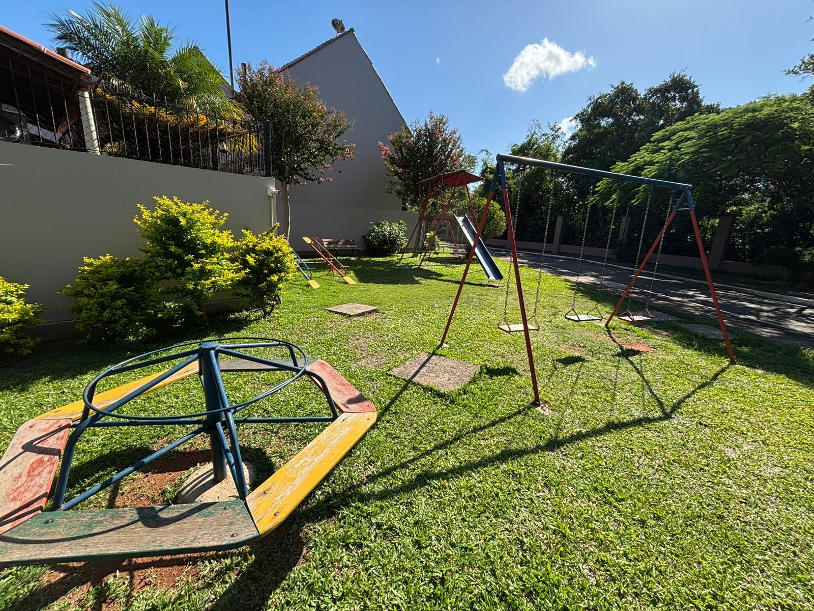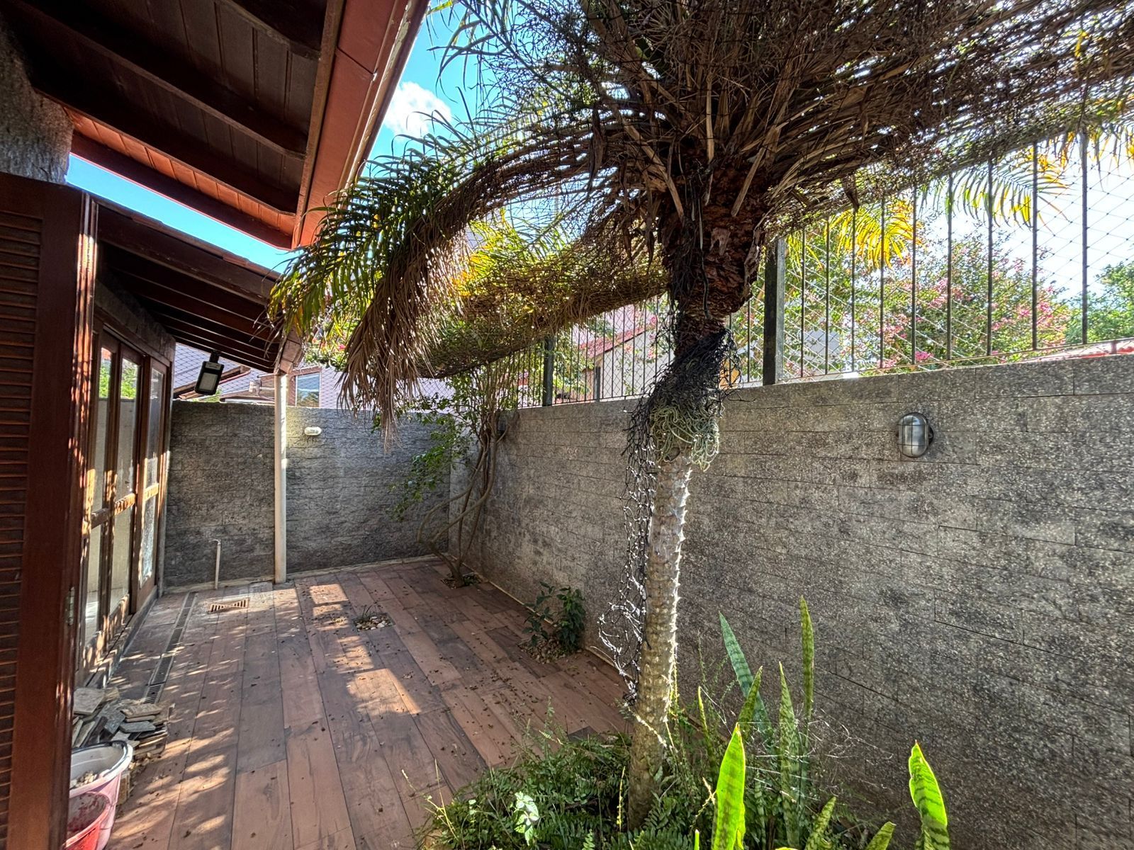 A cozinha é bem distribuída, com lavanderia separada, além de churrasqueira integrada para momentos de lazer. O imóvel dispõe ainda de um pequeno pátio, garantindo ventilação e espaço externo.