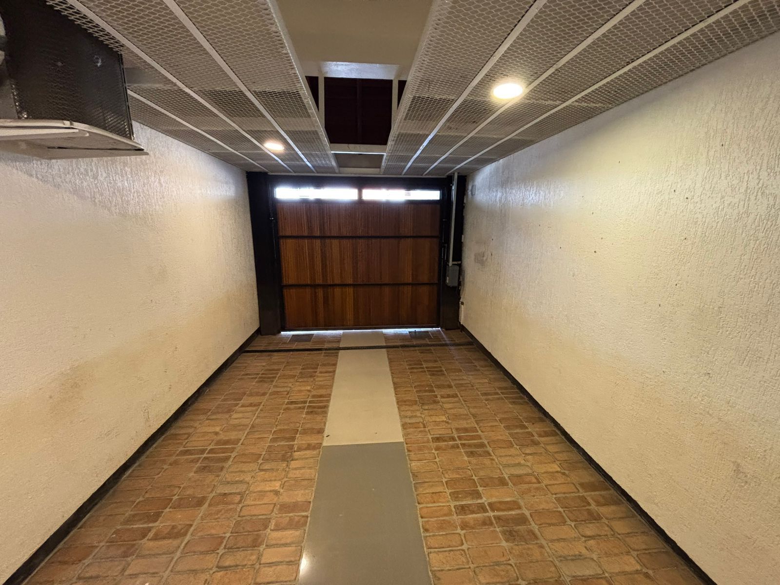 A garagem é coberta para 1 carro, com vaga descoberta para mais um veículo.