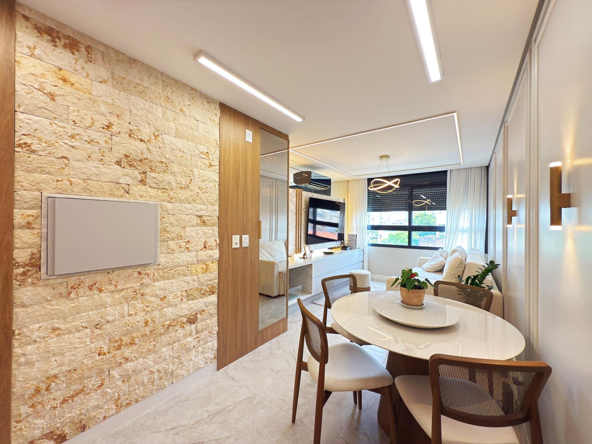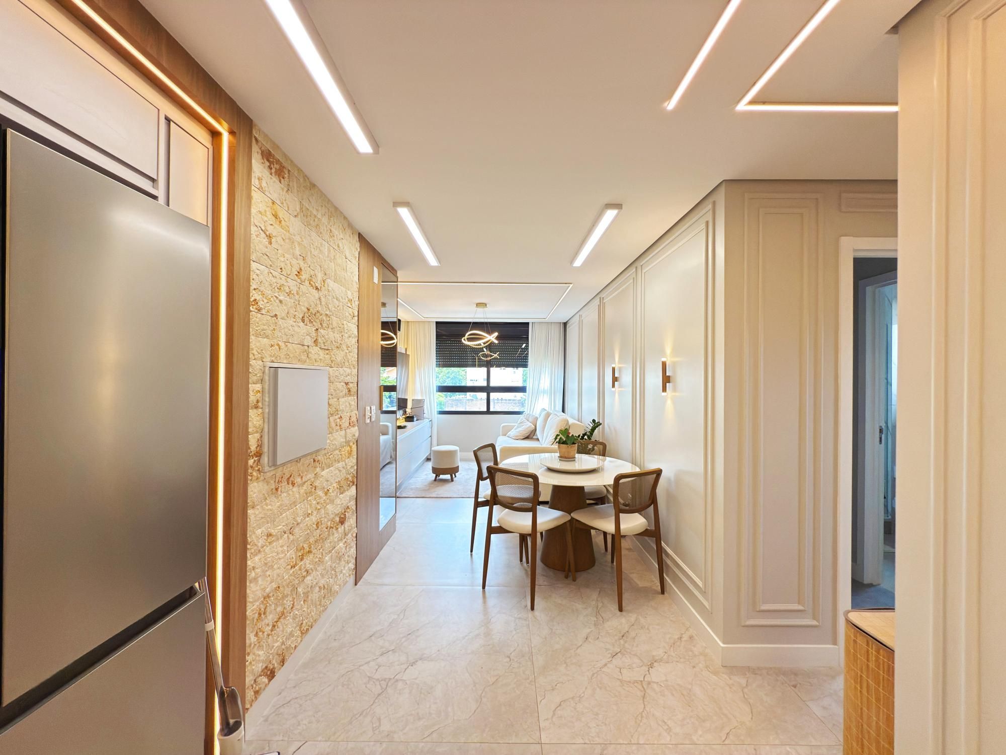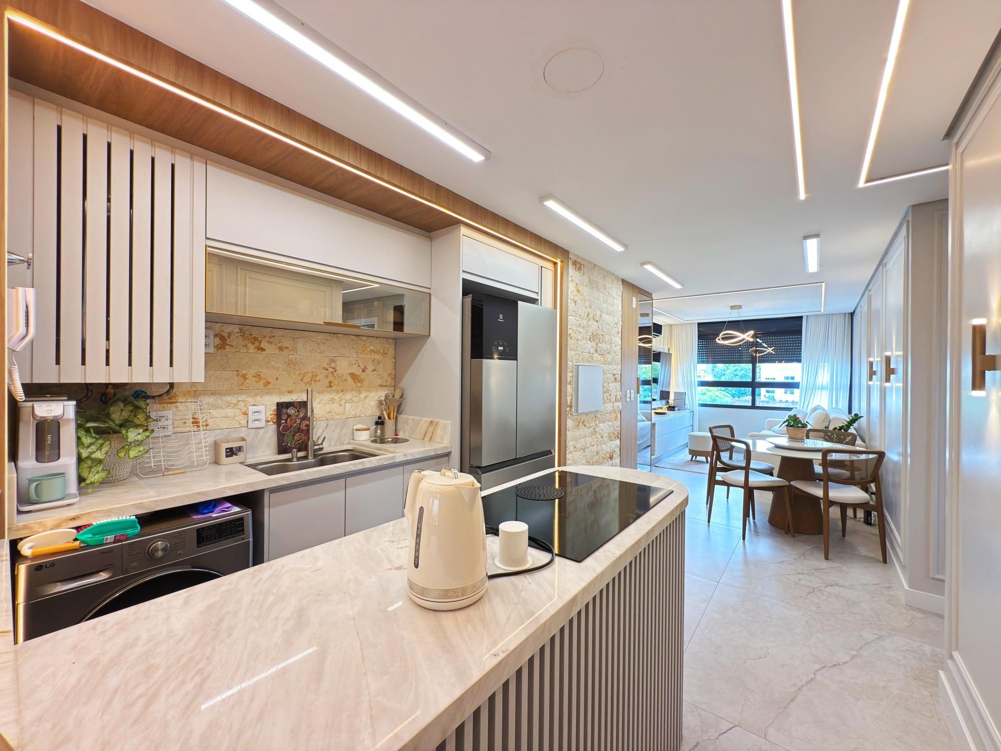 ❄️ Para garantir o seu conforto, o apartamento conta com ar condicionado, sala de estar e sala de jantar, móveis planejados e luminárias, proporcionando um ambiente agradável e acolhedor para você desfrutar com a sua família e amigos.