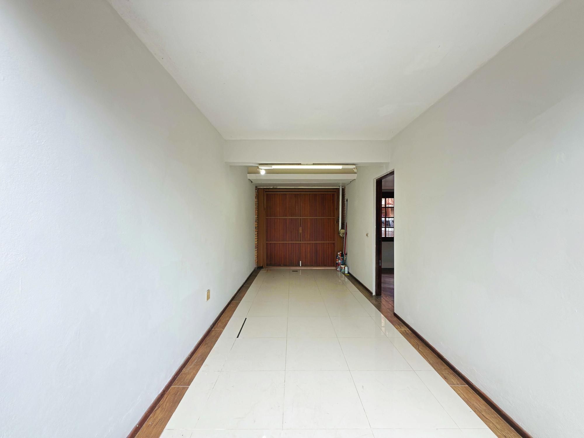 A garagem coberta comporta 2 carros, oferecendo praticidade e segurança.