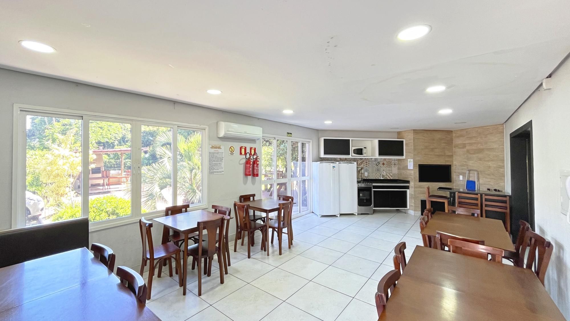 é financiável. Além disso, o imóvel conta com uma série de comodidades, como gás individual, circuito de TV, área de serviço, cozinha equipada, elevador, espera para split, interfone, churrasqueira, ar condicionado, sala de estar e jantar, piscina, internet, acessibilidade para PCD, cozinha e janelas amplas.