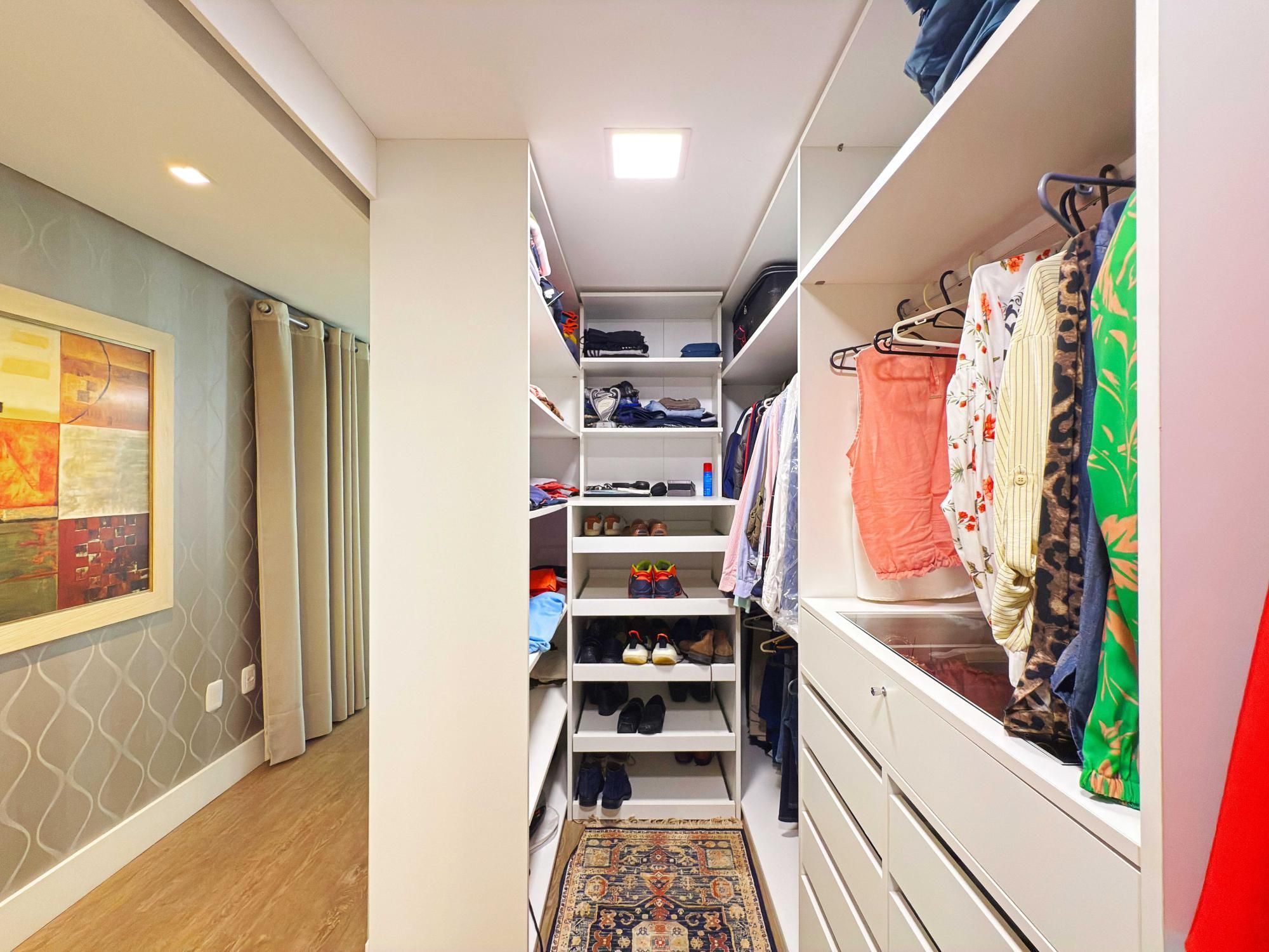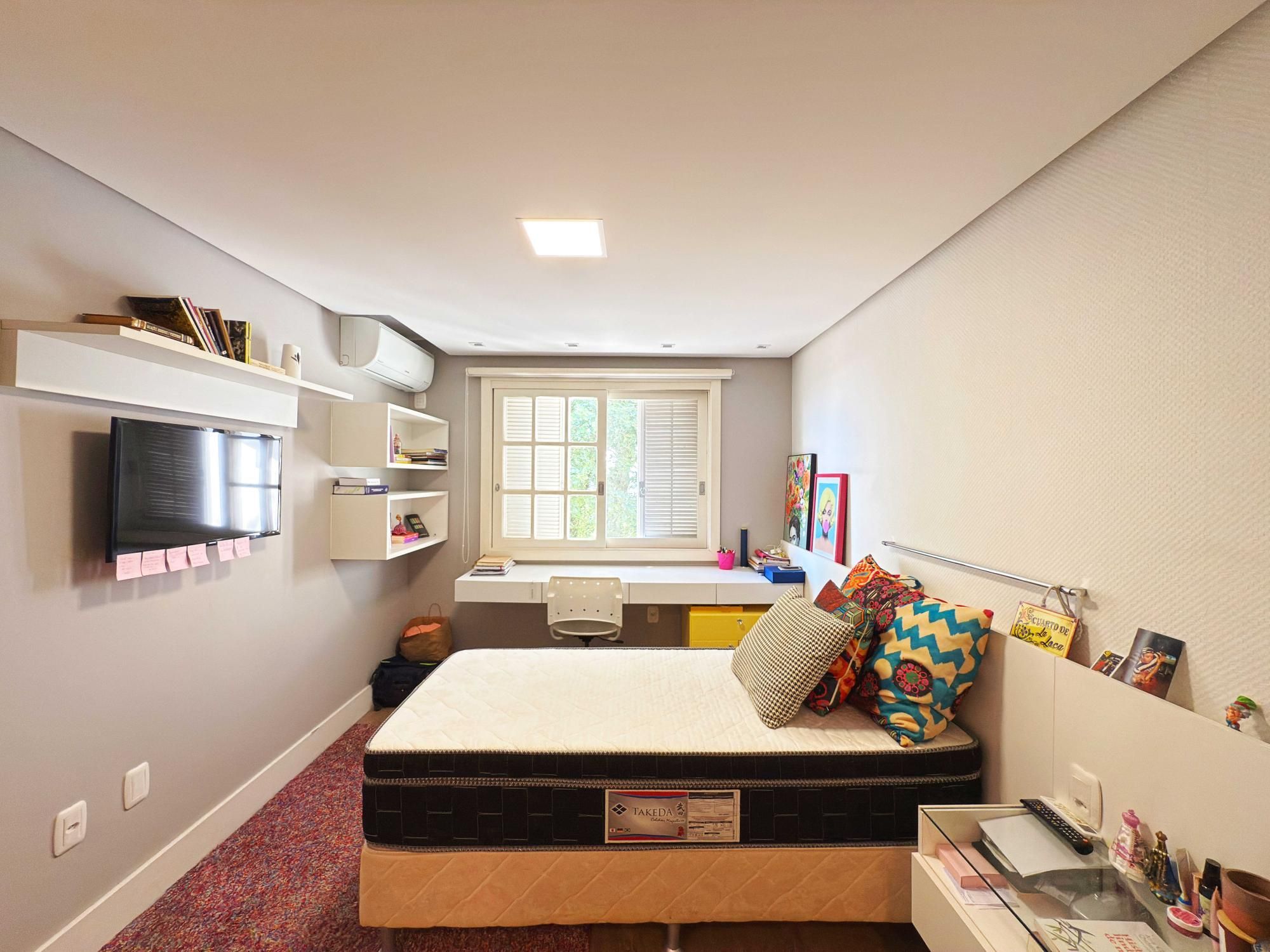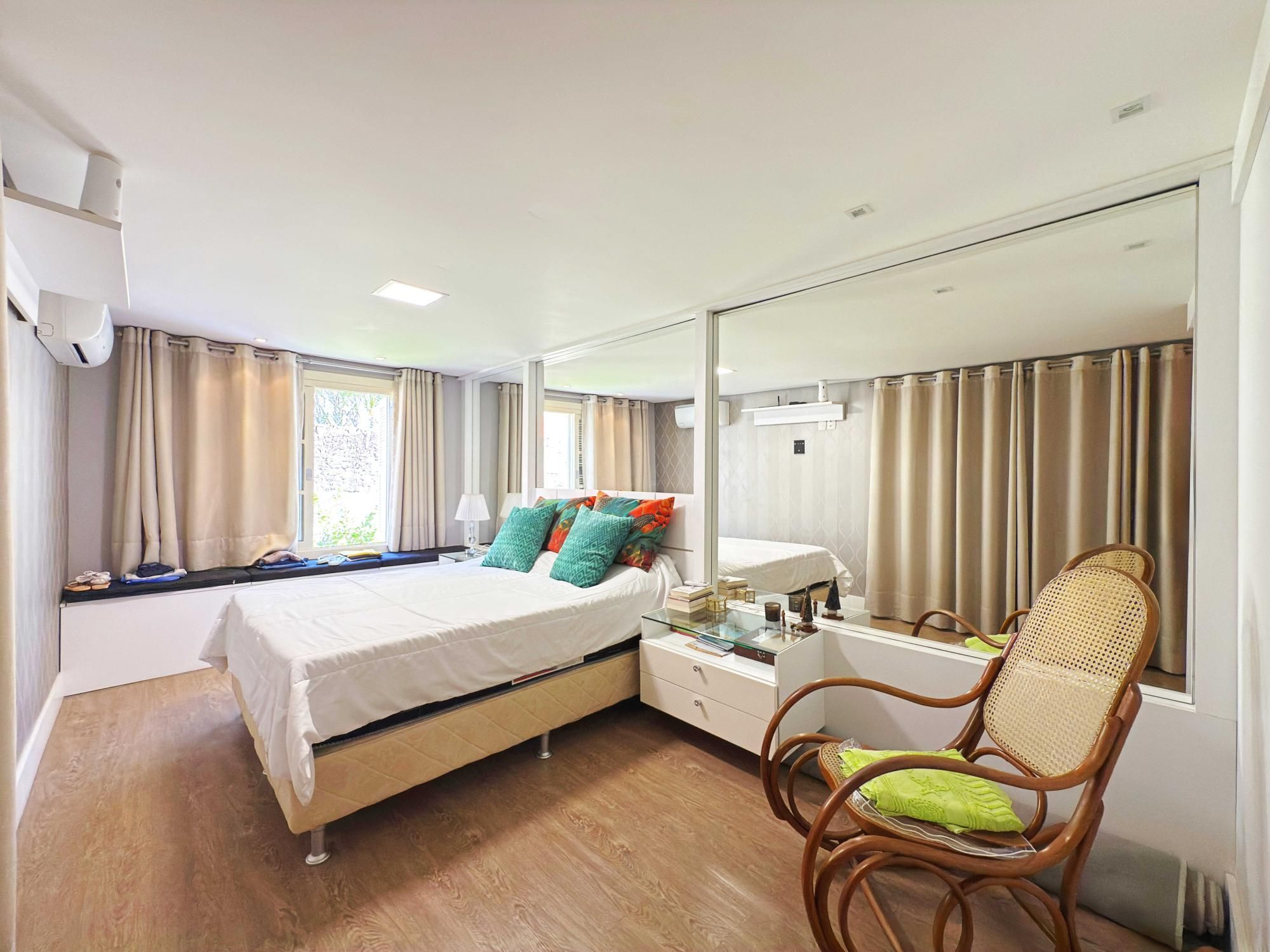 Parte íntima composta de 03 dormitórios, sendo um deles suíte de casal com closet e outra suíte de solteiro também com closet, sacada e banheiro social que atende o outro dormitório de solteiro. Opção de criar o 4º dormitório no sótão onde tem amplo terraço.