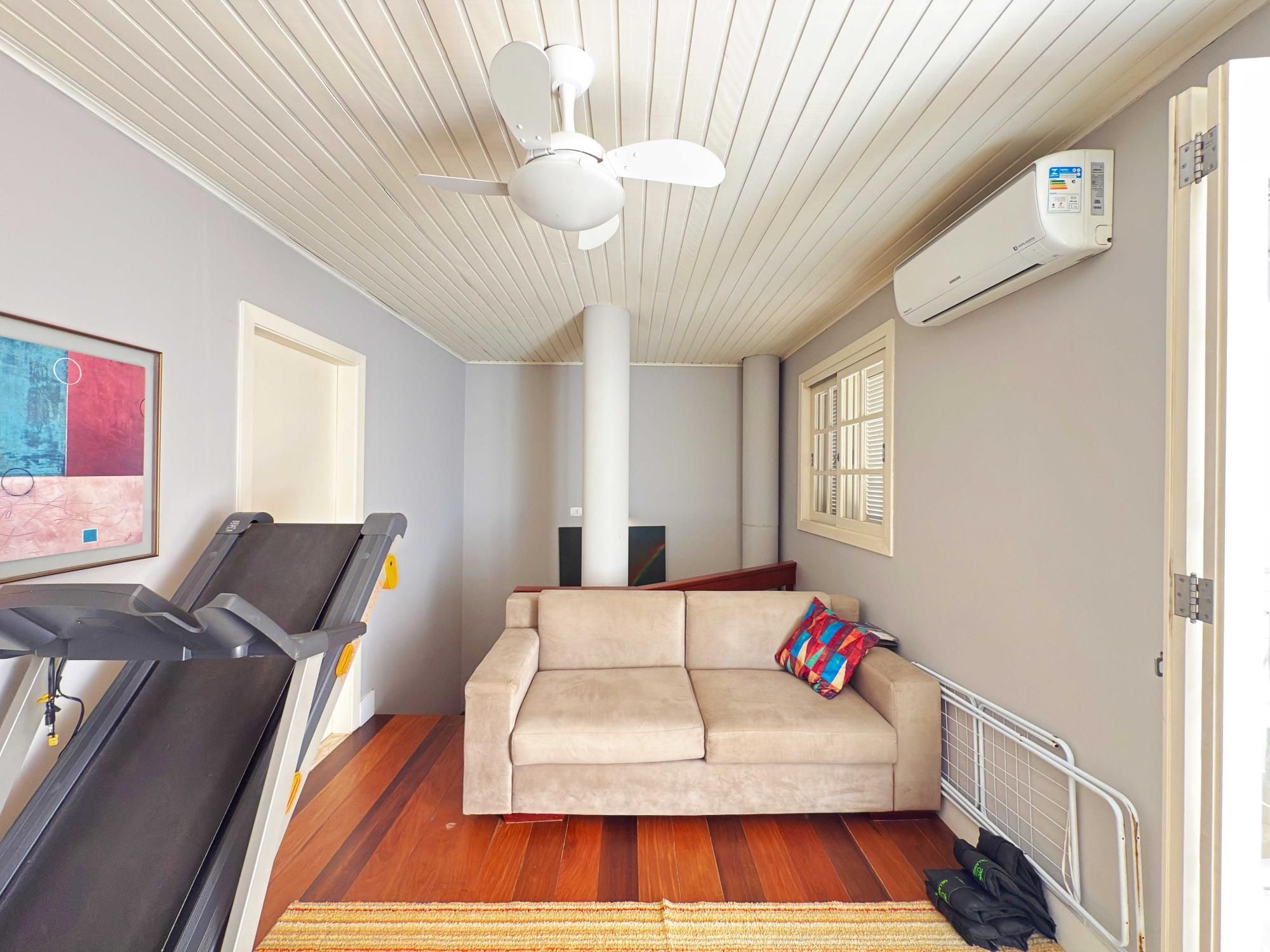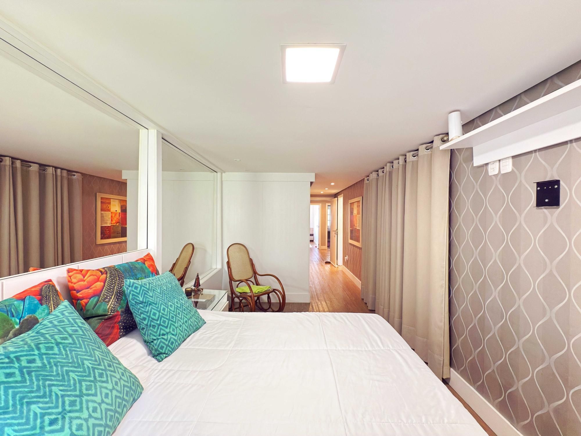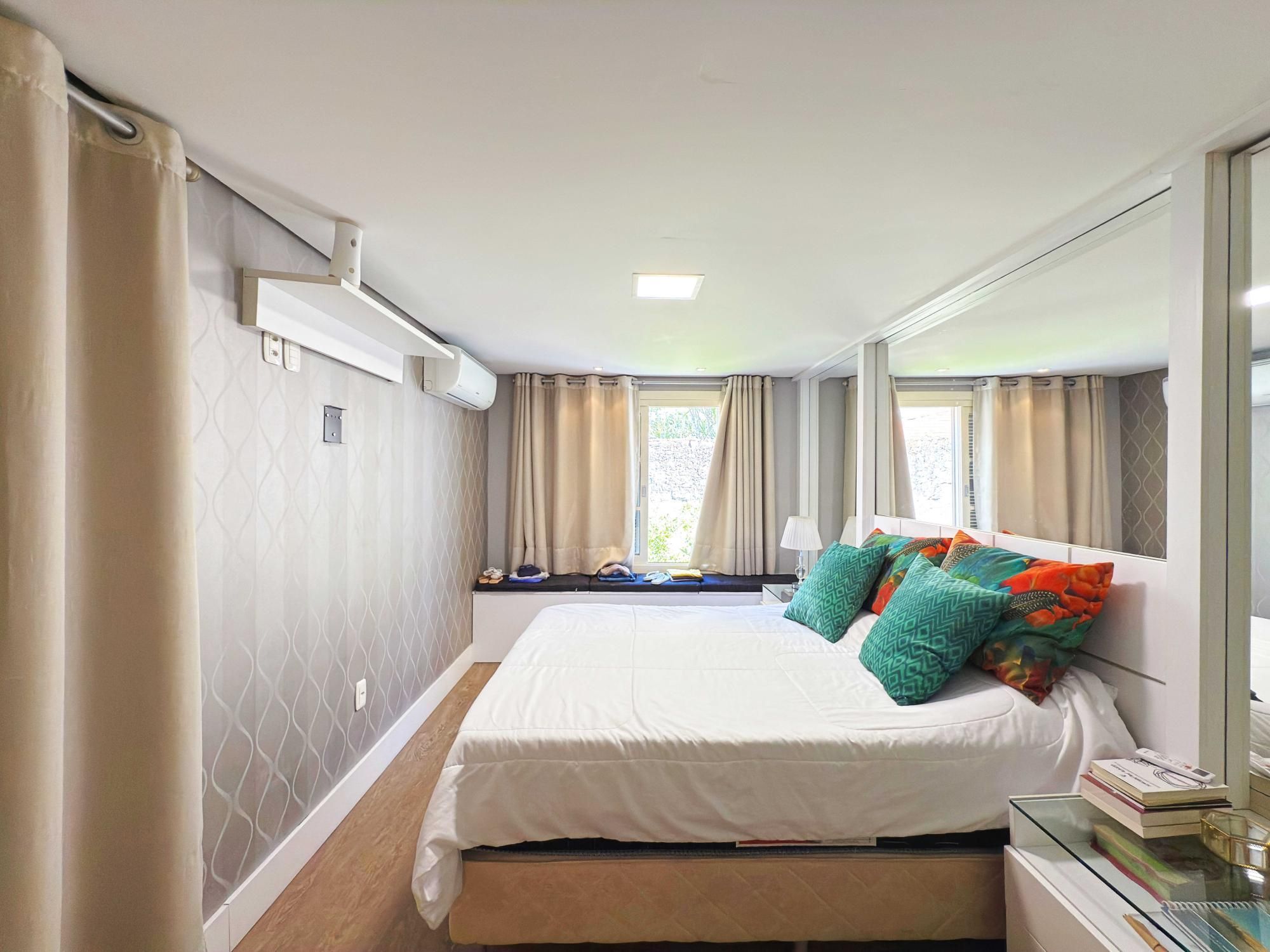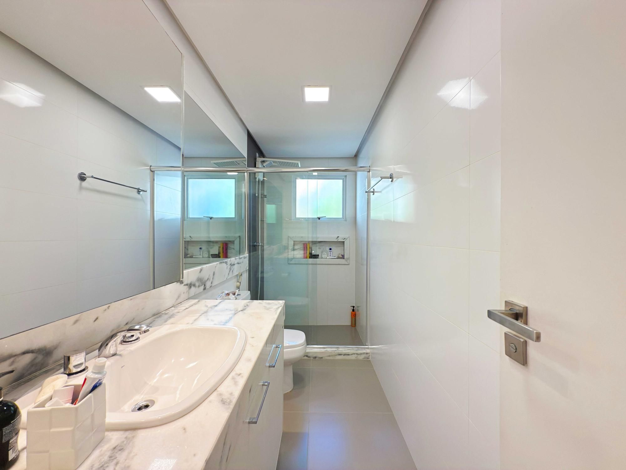 Parte íntima composta de 03 dormitórios, sendo um deles suíte de casal com closet e outra suíte de solteiro também com closet, sacada e banheiro social que atende o outro dormitório de solteiro. Opção de criar o 4º dormitório no sótão onde tem amplo terraço.