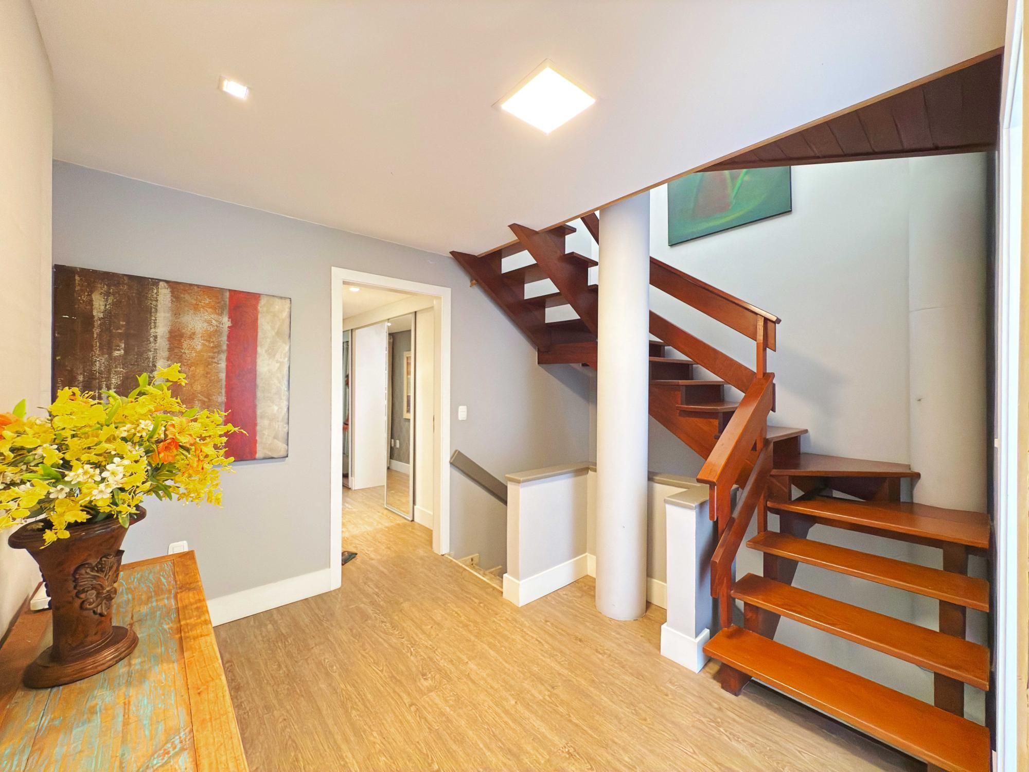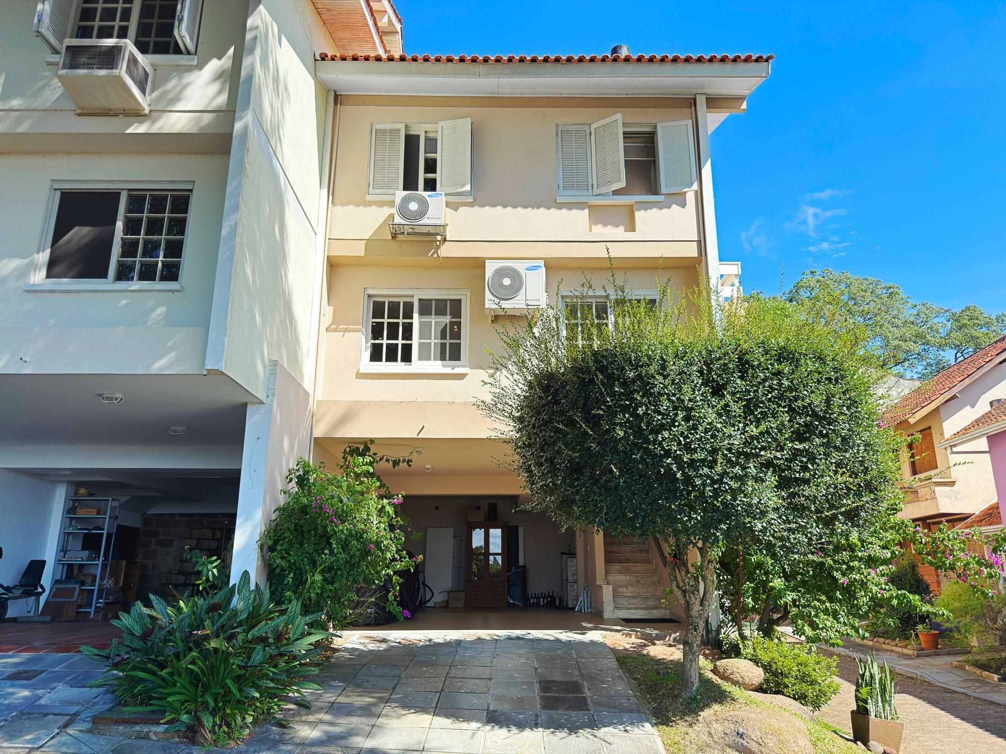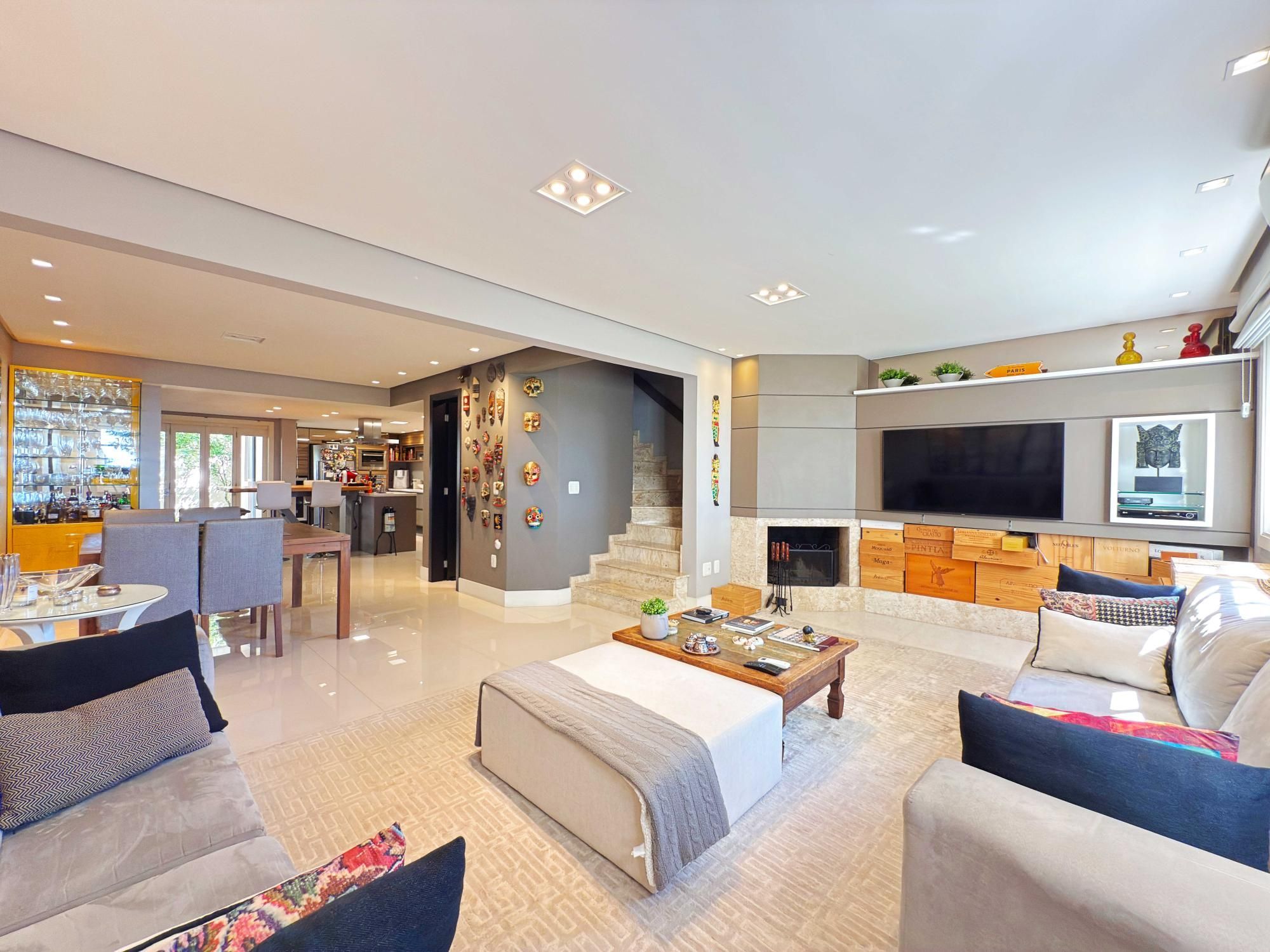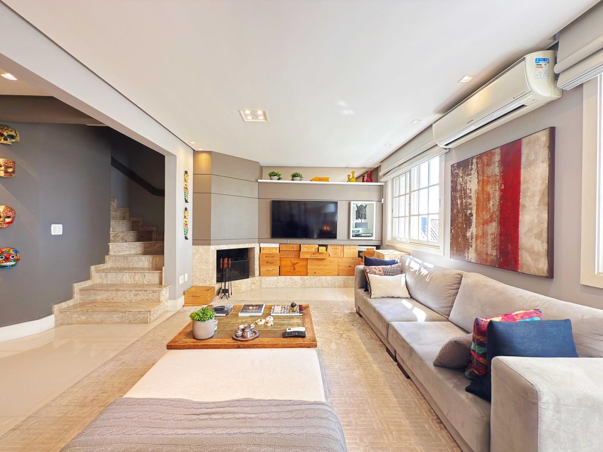 Parte social lindamente decorada e todos os seus ambientes integrados com living e lareira, lavabo, espaço gourmet, cozinha sob medida e bancada. Patio privativo ao fundo com espaço de lavanderia e área de serviço. Garagem coberta para 2 carros.