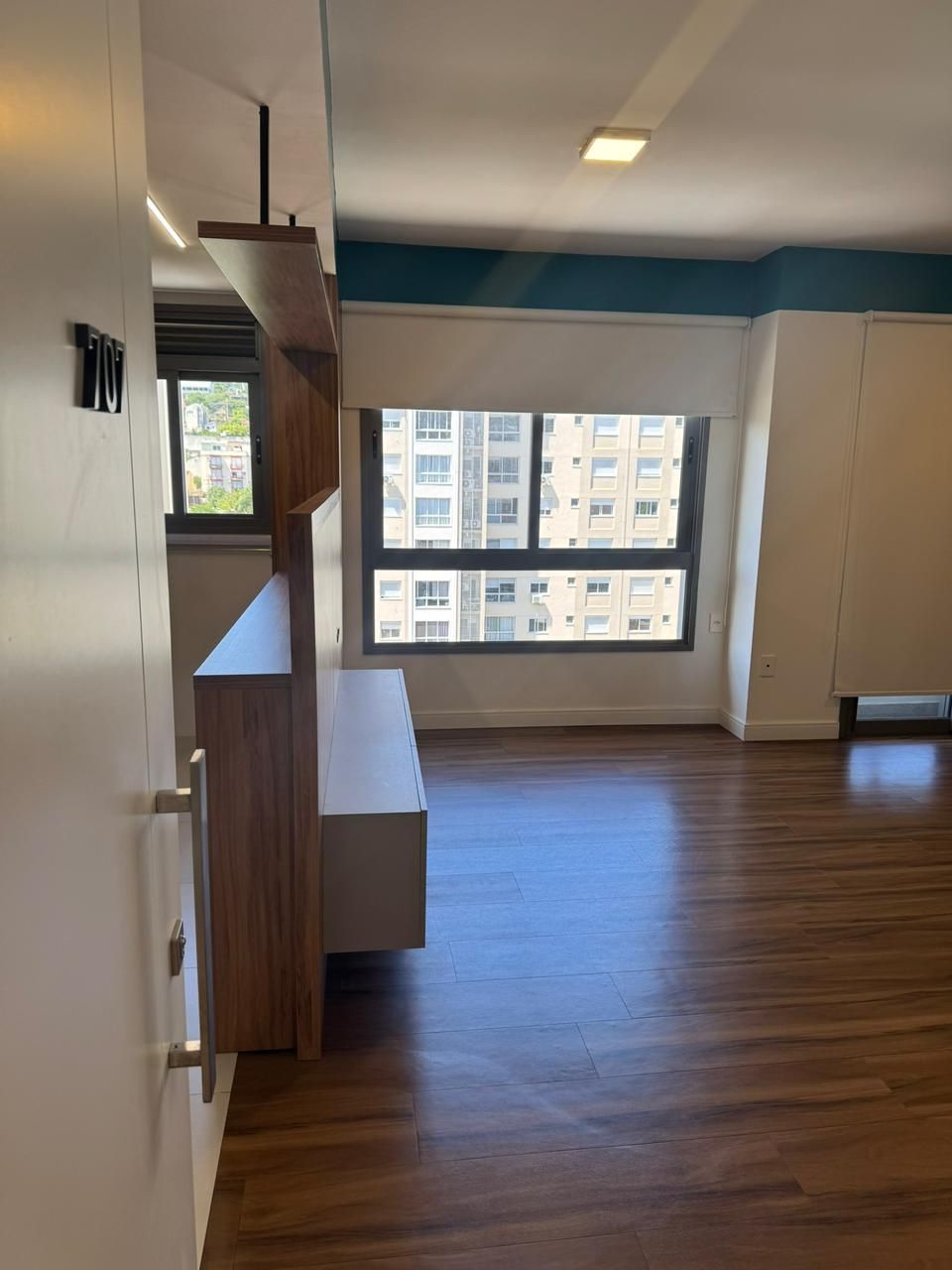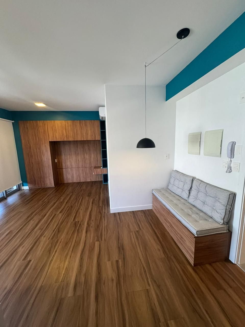 Impecável , studio semi mobiliado, com piso vinílico, cozinha com móveis planejados, churrasqueira, ar condicionado e uma vaga de garagem coberta.