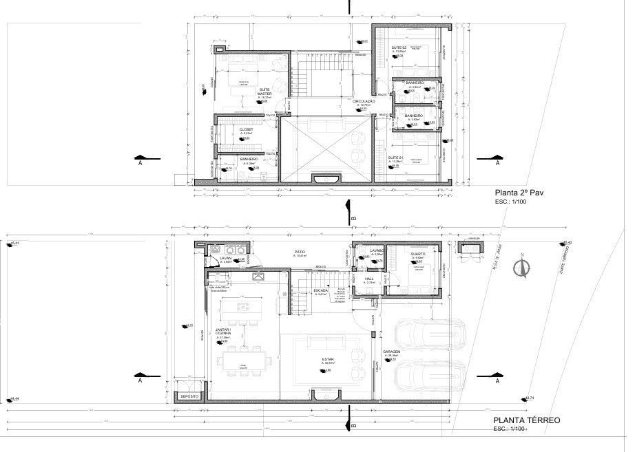 No segundo pavimento, o imóvel conta com 3 suítes, sendo 1 suíte master com closet e sacada, além de área de circulação em estilo mezanino.
