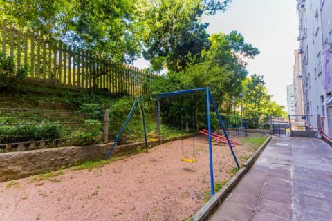 Condomínio com elevador, salão de festas e churrasqueiras, quadra poliesportiva, playground e interfone.