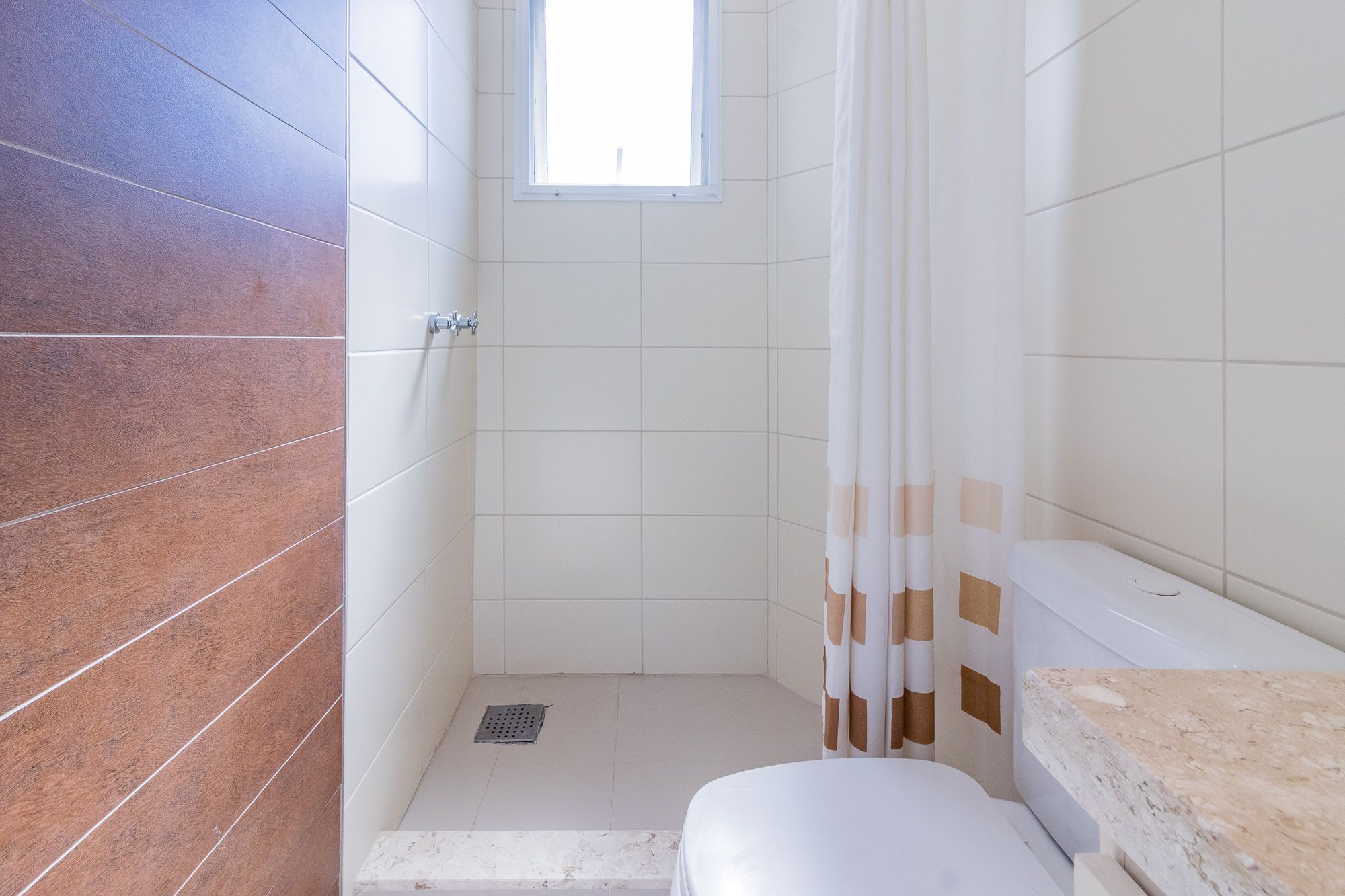 Condomínio conta com salão de festa com espaço lounge, elevador e zelador.