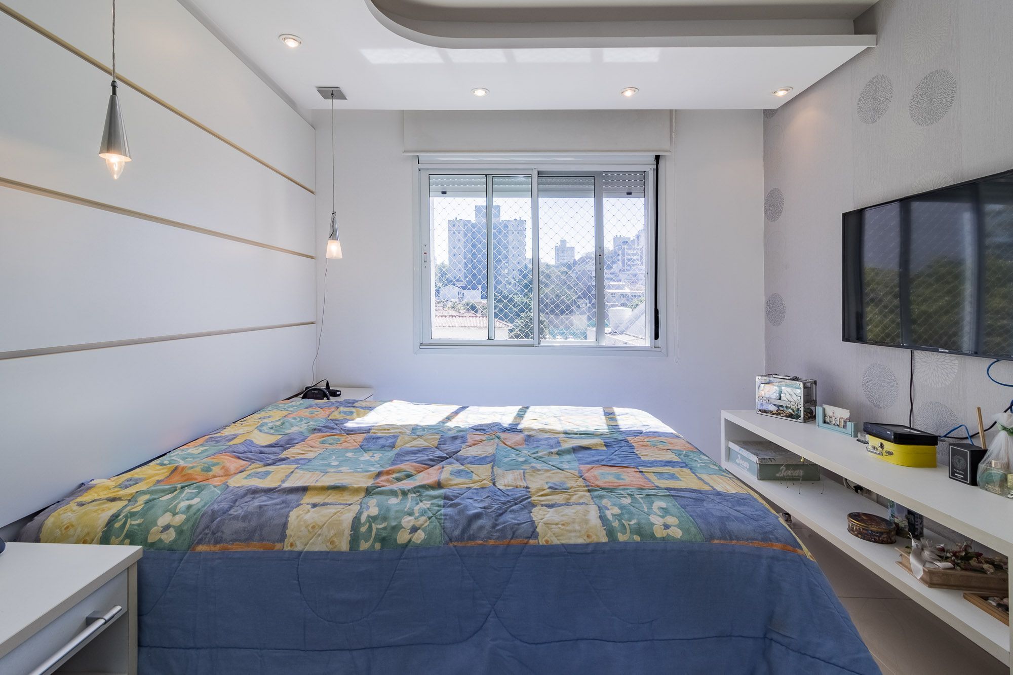 Apartamento mobiliado com 84 m² de área privativa com 2 dormitórios sendo 2 suítes, living amplo para 3 ambientes com churrasqueira, vista panorâmica, sol da manhã em todos os cômodos, cozinha americana planejada com bancada em granito, lavabo reformado e transformado em área de serviço individual para dar mais amplitude e espaço. Possui 1 vaga de garagem coberta e escriturada.