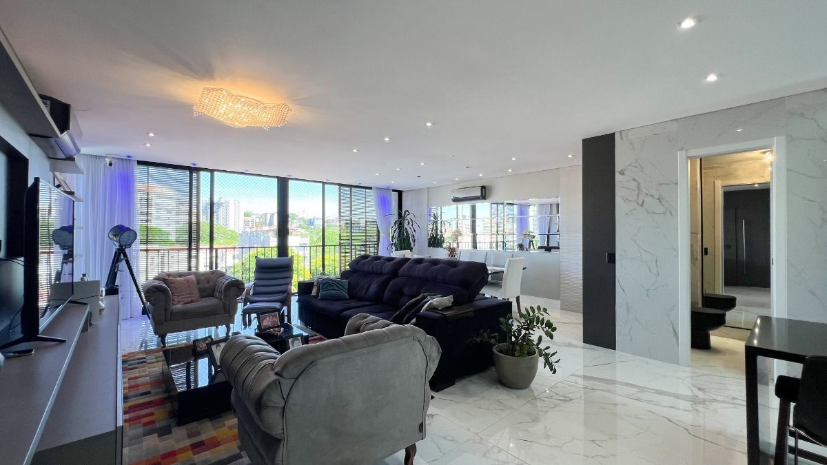 No coração do Jardim Lindóia, este apartamento de luxo surpreende pela exclusividade e amplitude. Com 185,62 m² privativos, resultado da unificação de duas unidades, o imóvel oferece uma planta única e extremamente funcional. São três suítes bem distribuídas, incluindo uma suíte master com closet espaçoso. O living integrado cria um ambiente moderno e acolhedor, ideal para receber ou relaxar com conforto. A cozinha em estilo ilha com churrasqueira valoriza o design e a praticidade, além de contar com área de serviço independente e lavabo. Decorado com alto padrão de acabamento, o apartamento ainda possui quatro vagas de garagem cobertas e prédio com elevador e gás central. Tudo isso em um bairro residencial tranquilo, com fácil acesso a comércios, serviços e principais vias da cidade.