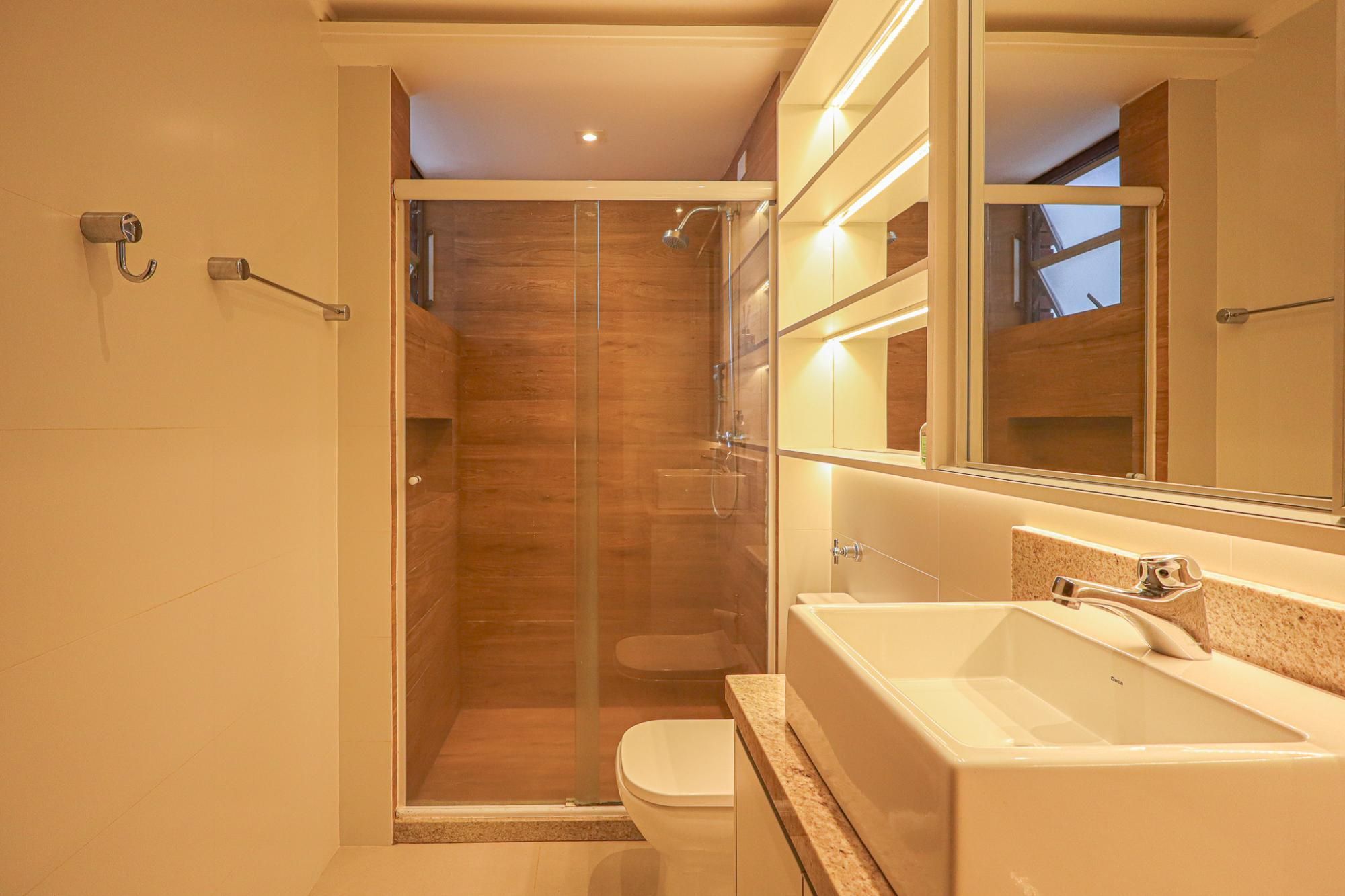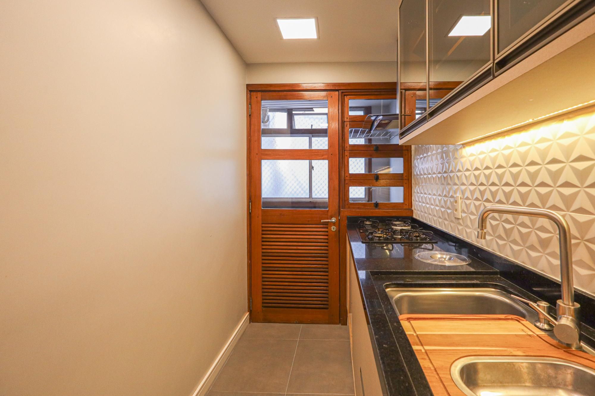 Apartamento semimobiliado com 93 m² de área privativa com 3 dormitórios, banheiro social com ventilação natural, living para 3 ambientes, janelas amplas proporcionando ótima iluminação, cozinha montada com área de serviço individual com banheiro auxiliar completo. Possui 1 vaga de garagem coberta e escriturada.
